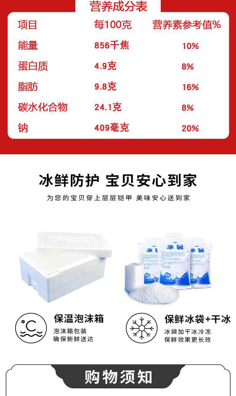 | Packing specification | Thin skin vegetarian package leek eggs 500g * 1(15),Thin skin vegetarian package leek eggs 500g * 2(30),Thin skin vegetarian package leek eggs 500g * 4(60),(New Taste, 30) Spicy Fans 500g * 2 |