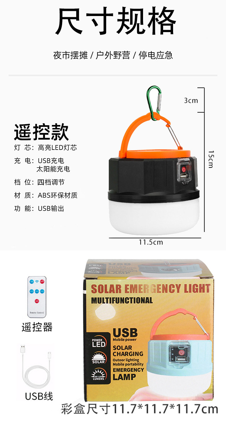 Cross-border outdoor LED solar light new portable lamp USB charging camping light emergency bulb light camping light