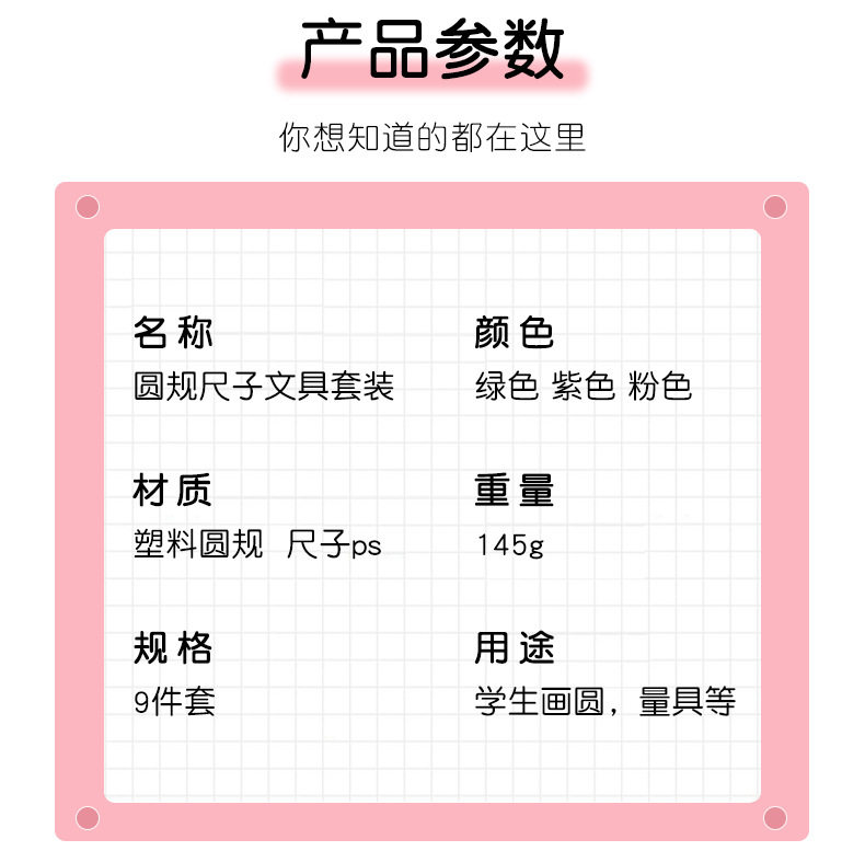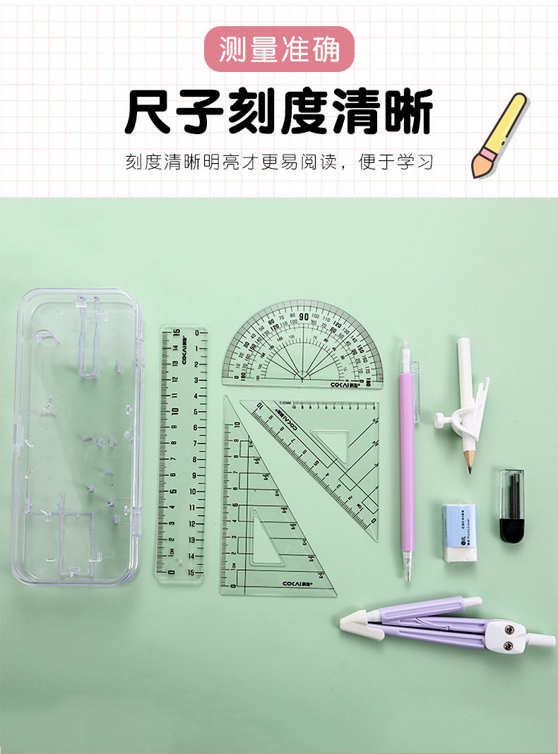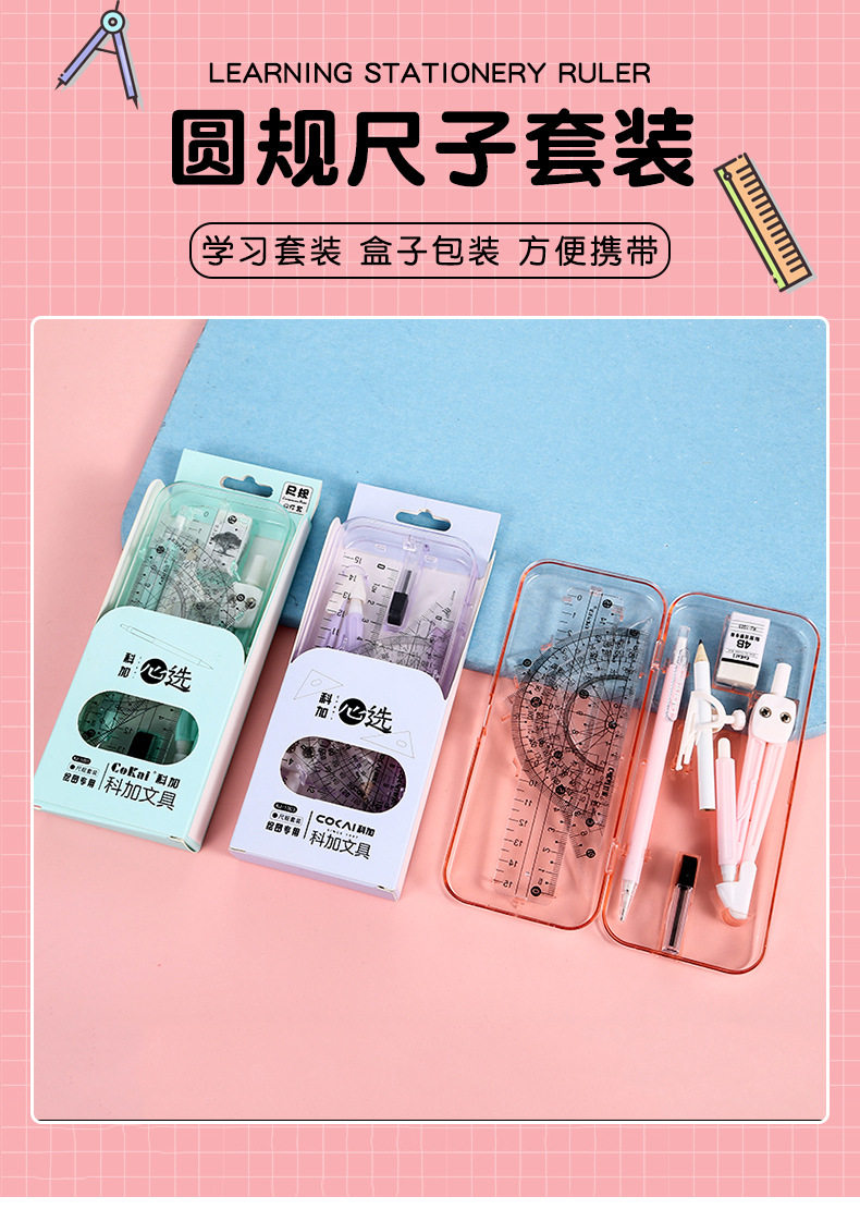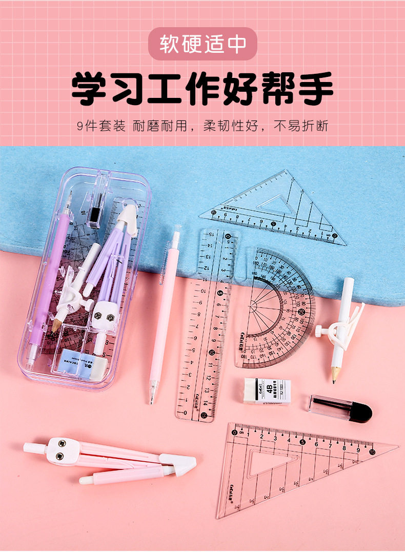 Student Exam Compass Ruler 9-piece Set Multifunctional Ruler Set Student Drawing Tool Drawing Set Ruler Wholesale