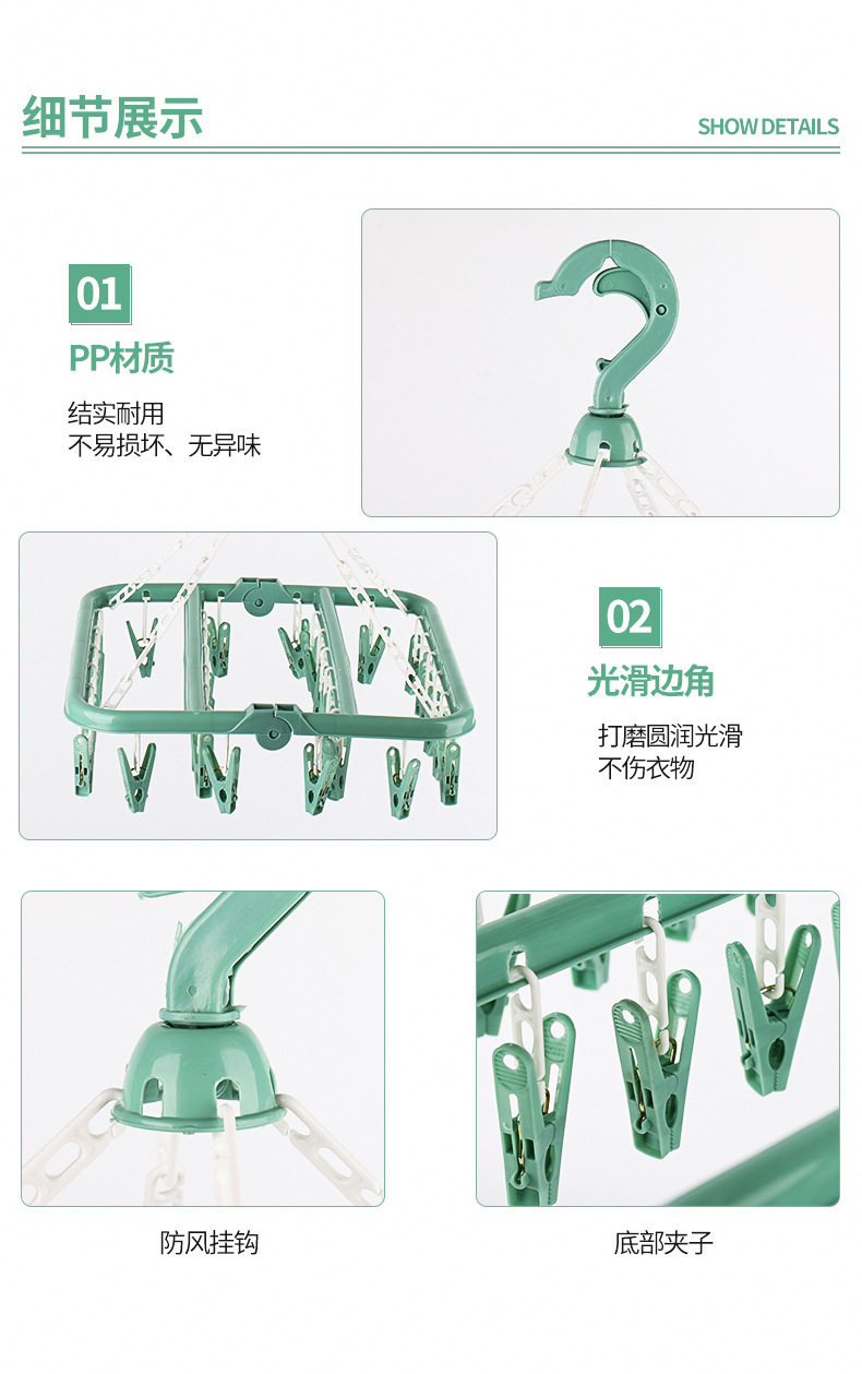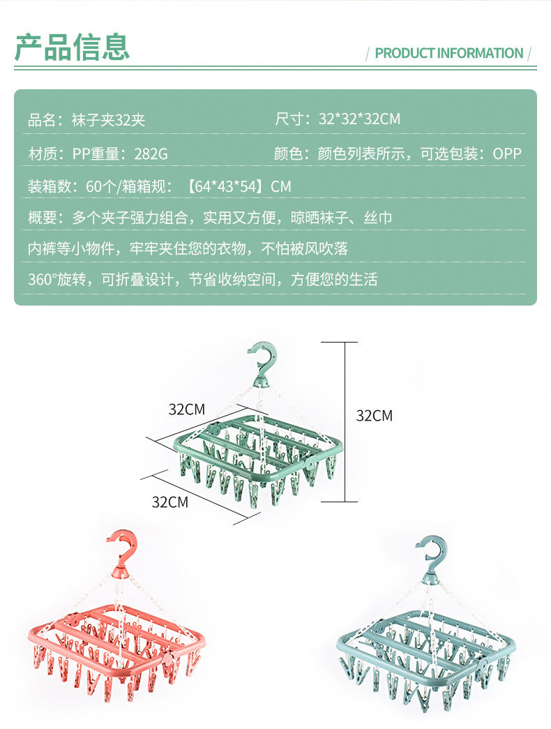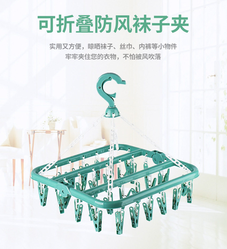 32-clip folding hanger square multi-head clothes hanger household bra clip underwear socks rotatable drying rack