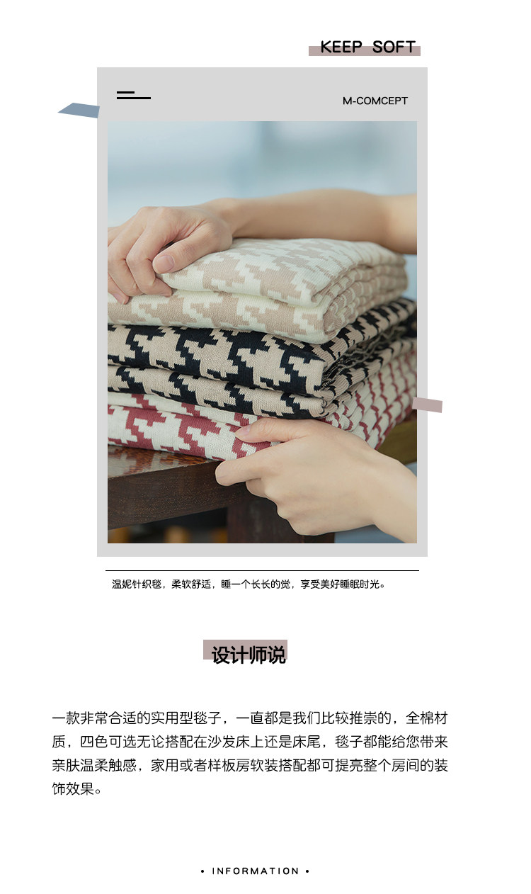 Nordic ins Light Luxury Air-conditioning Blanket Blanket Sofa Blanket Office Nap Blanket Summer Houndstooth Blanket