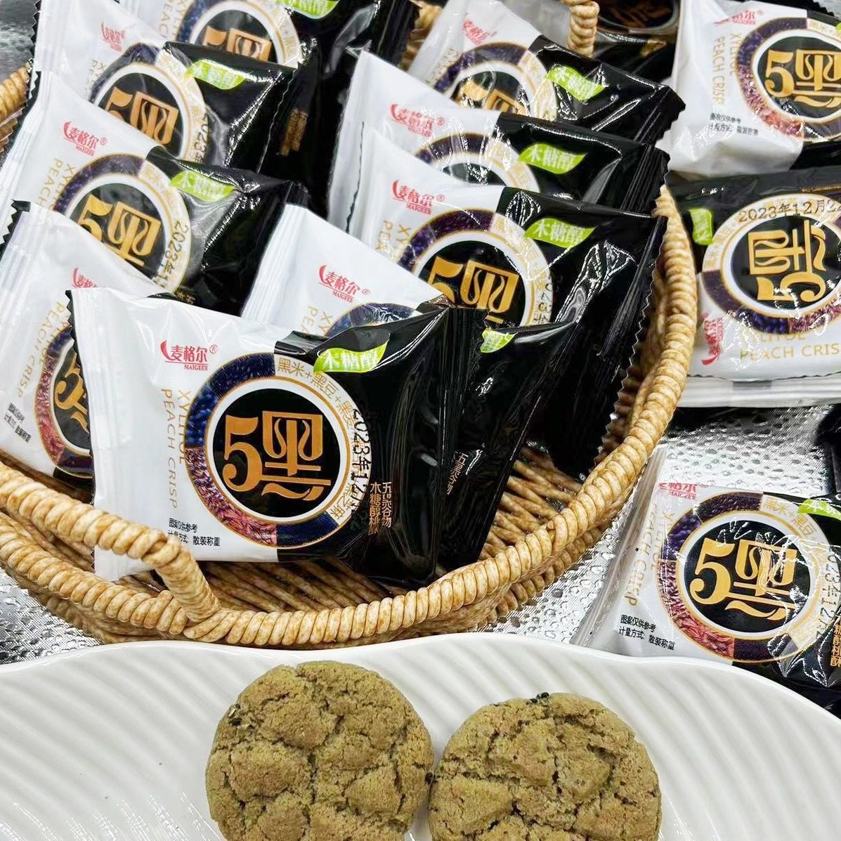 Factory Direct Xylitol Five Black Grain Peach Crisp Separate Packaging Bulk Black Bean Black Rice Peach Crisp One Piece Wholesale