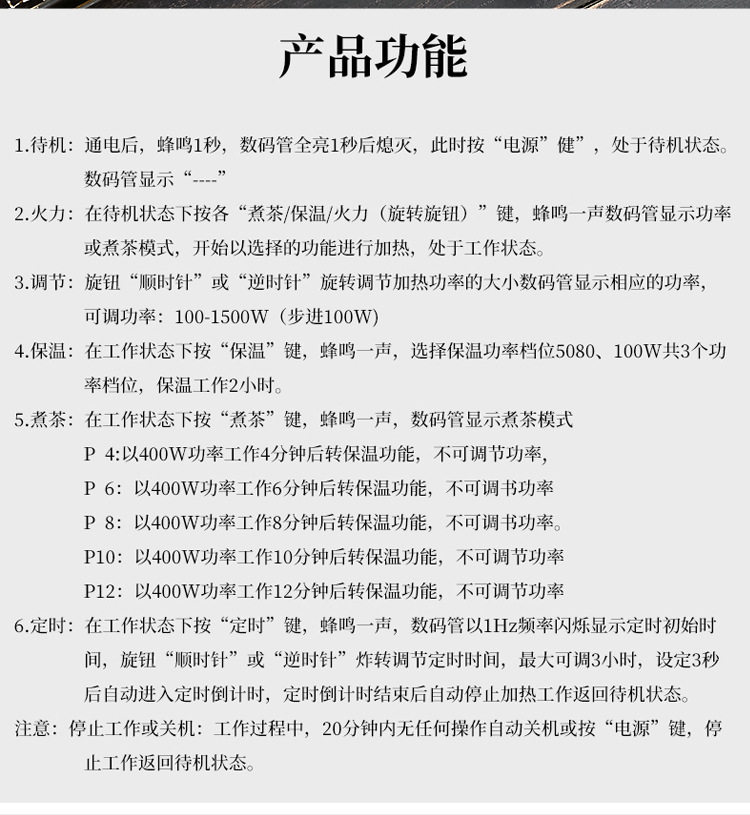 | Electric water kettle heating speed | 4 minutes (inclusive)-6 minutes (inclusive) |