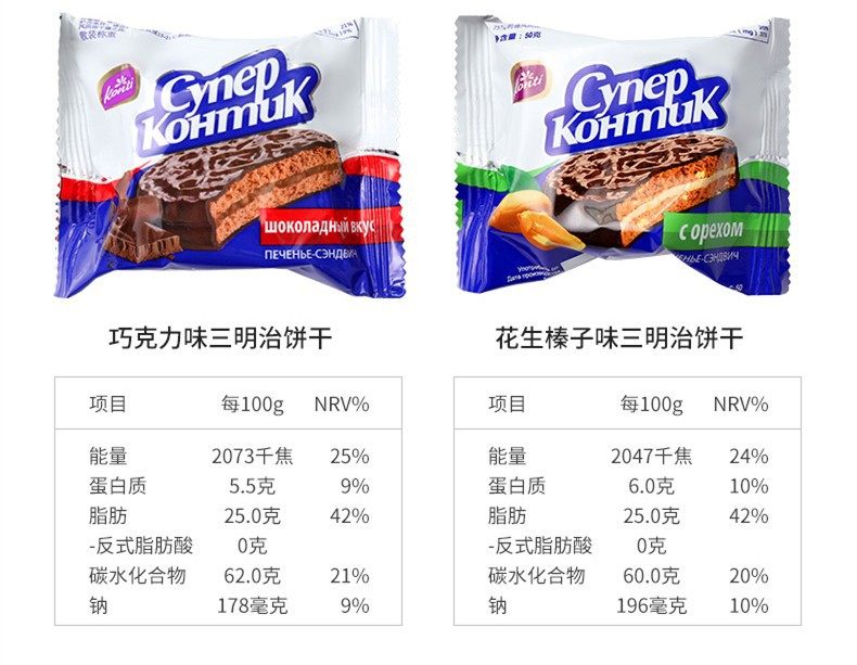 Russian imported Kangji food hazelnut sandwich biscuit sandwich chocolate pie breakfast snack Leisure
