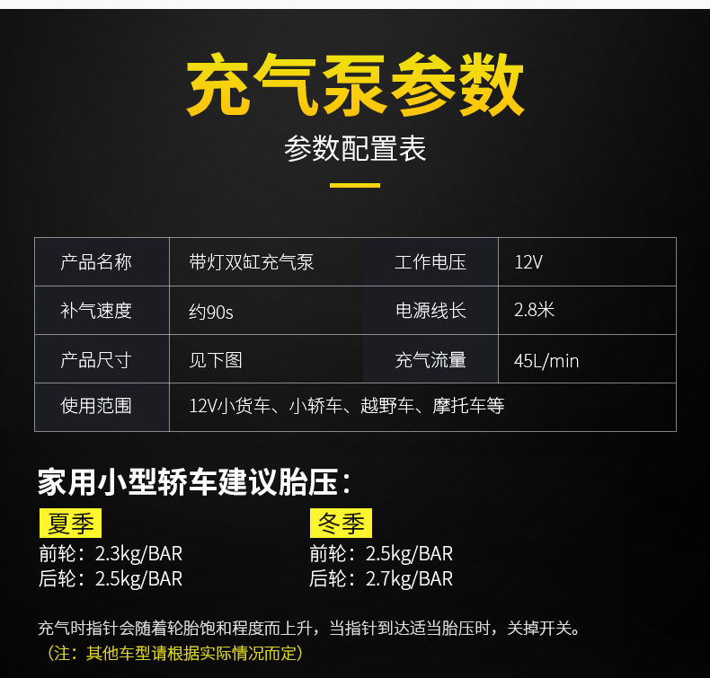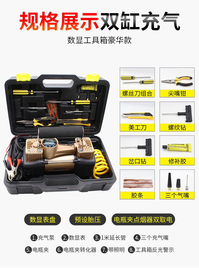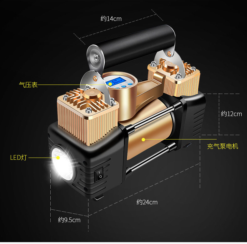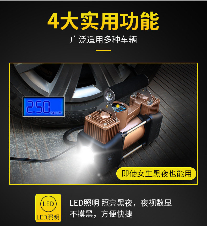Car Air Pump Double-Cylinder High-Pressure 12V High-Power Car Tire Inflator Electric Air Pump for Rapid Inflation