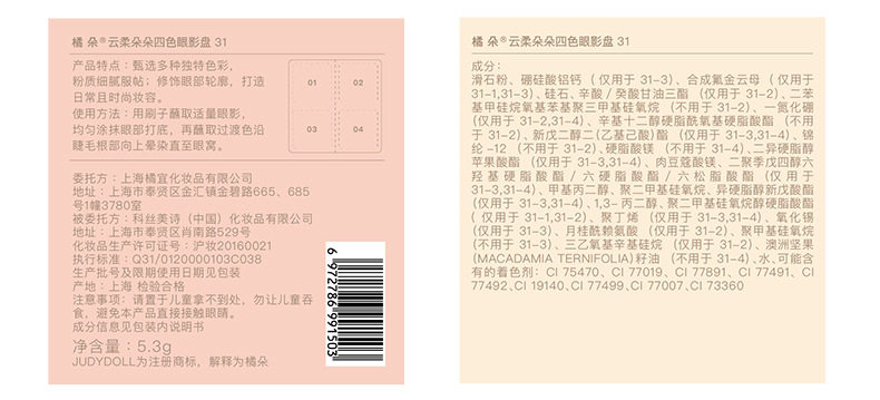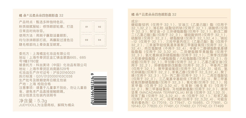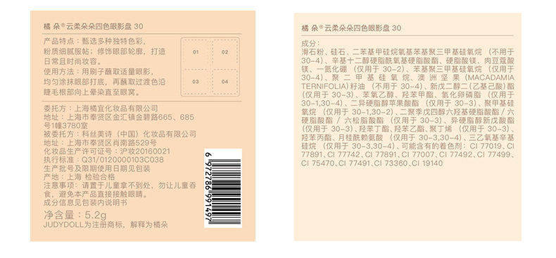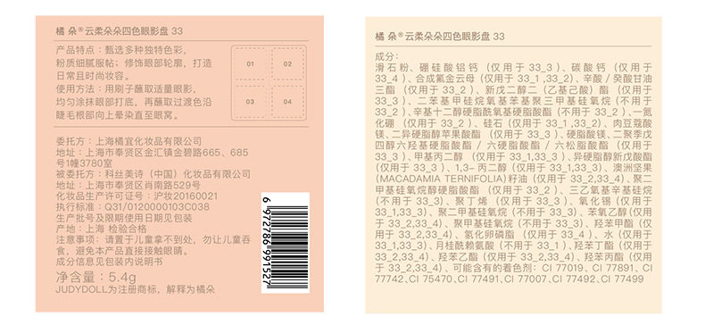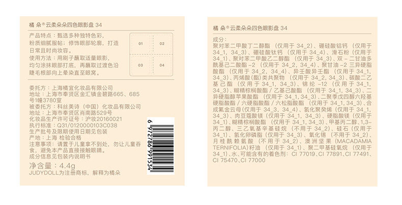 | Color classification | Warm reminder: due to different batches, the weight is different,30 milk tea tray,Yunrou duoduo four-color eye shadow palette 31,33 black tea tray,40 oatmeal three-dimensional plate |