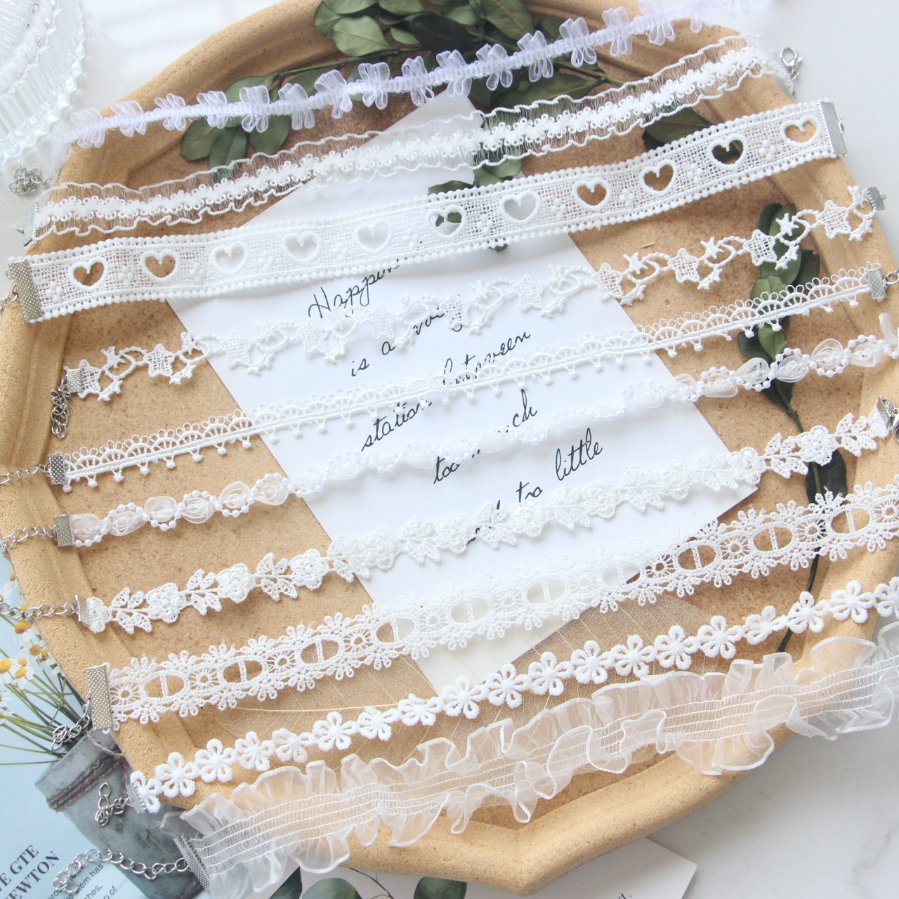 Niche ins Style Neck Belt Super Fairy Cyber Celebrity Hollow White Clavicle Chain Flower Love Lace choker Stall Batch