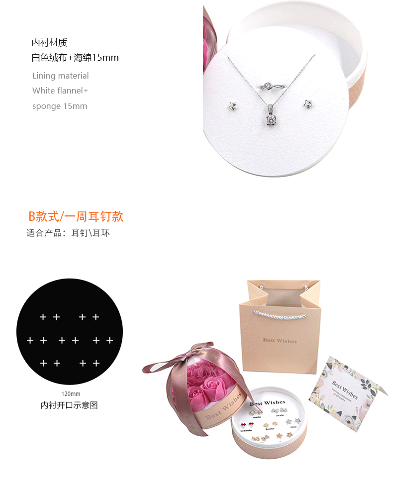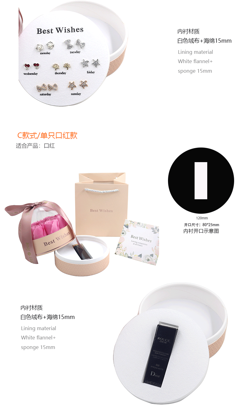 | Specifications | Universal box for earrings, rings and necklaces,Single lipstick box,Double lipstick box,Seven pairs of earring boxes |