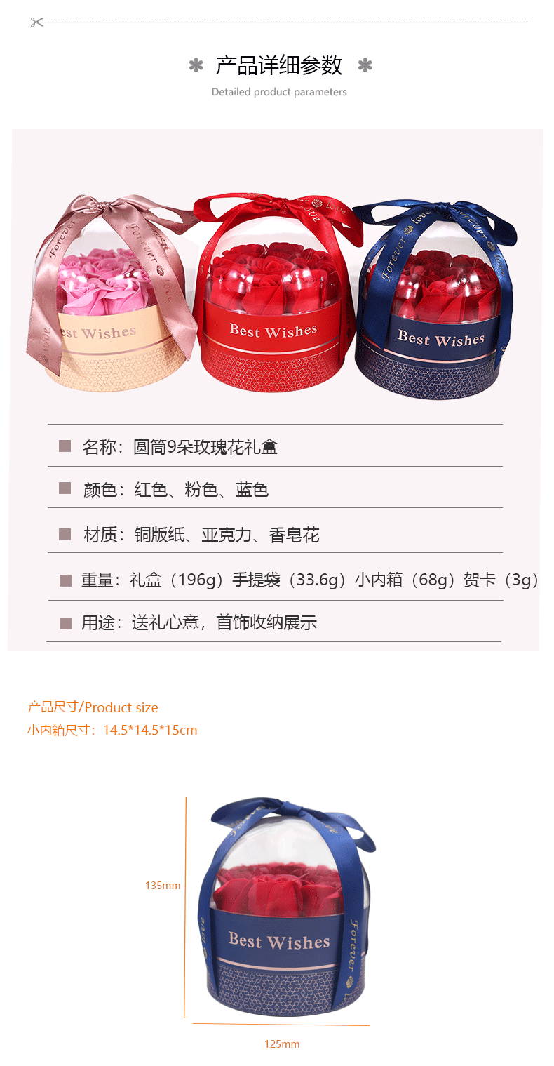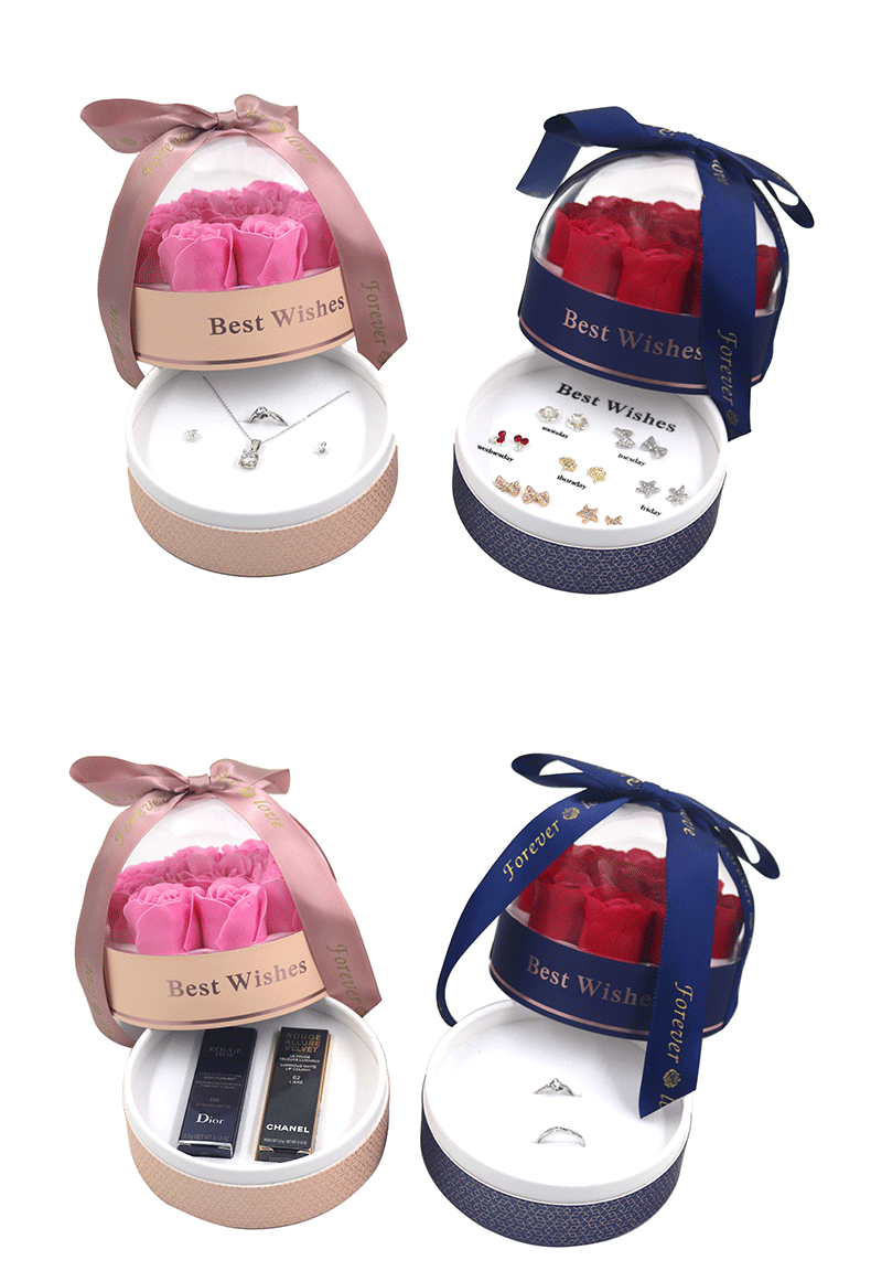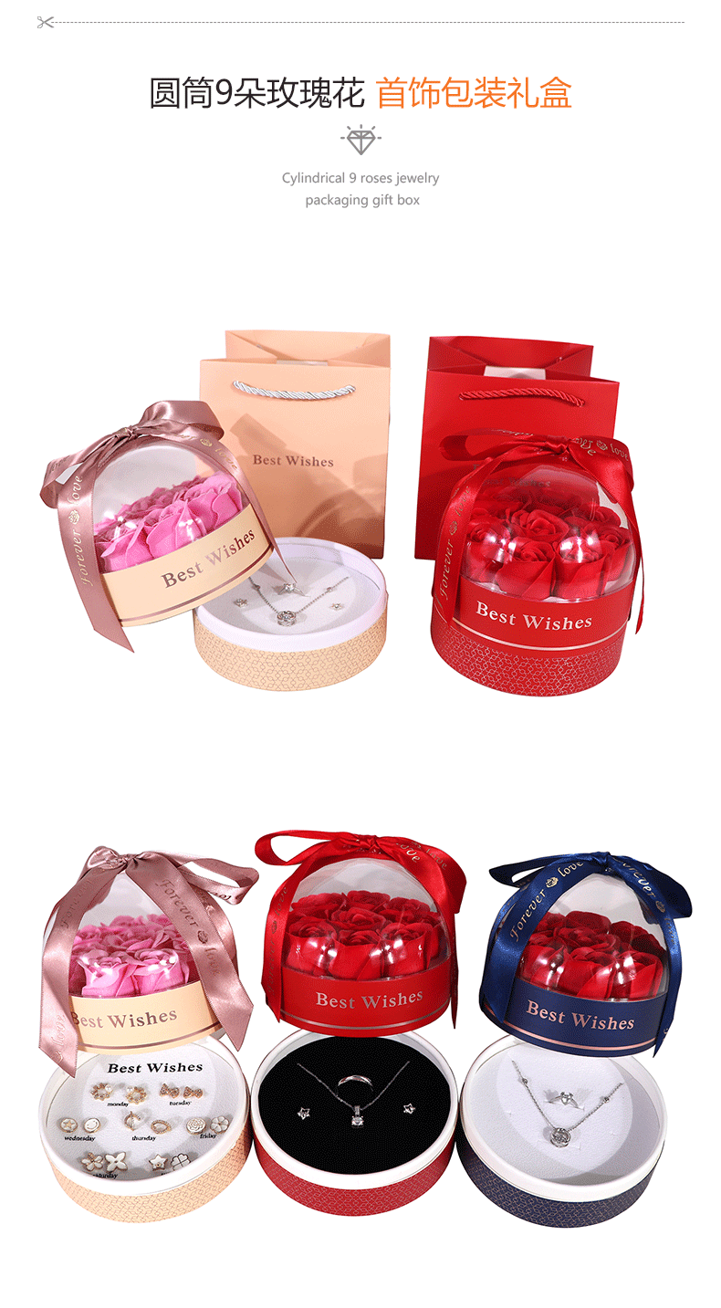 Batch Cylinder 9 Rose Box Earrings Ring Necklace Lipstick Jewelry Gift Box Seven Pairs of Earrings Gold Cake Box