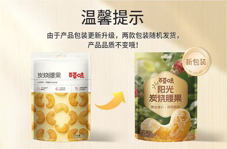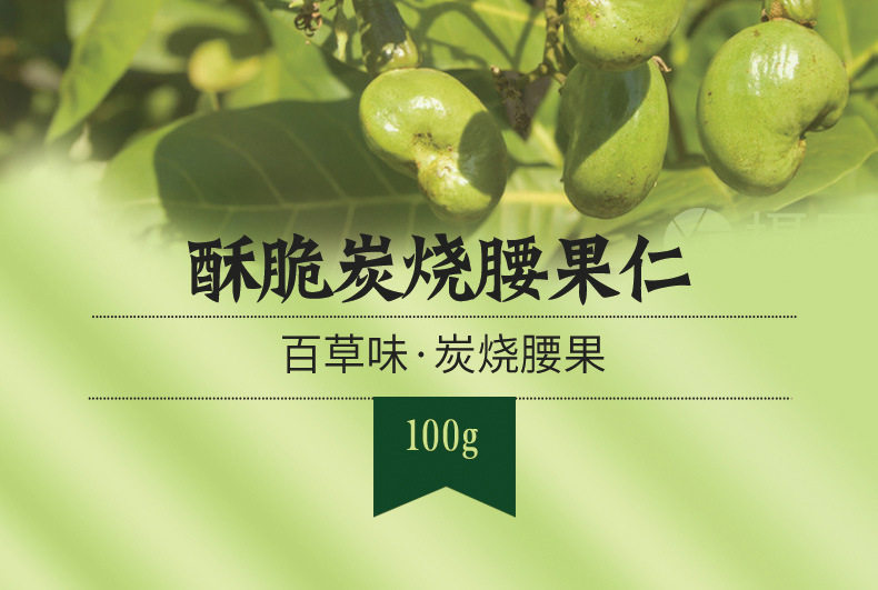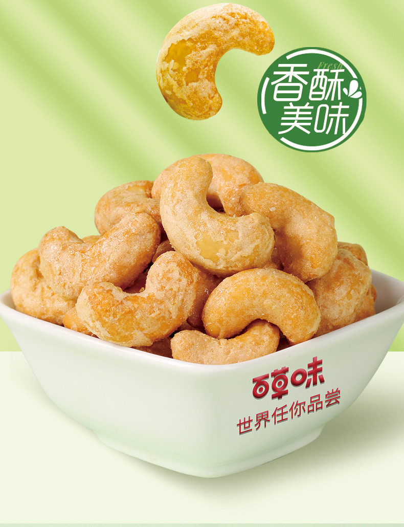 | Packaging specifications | Charcoal roasted cashew nuts 50g,Charcoal roasted cashew nuts 100g |