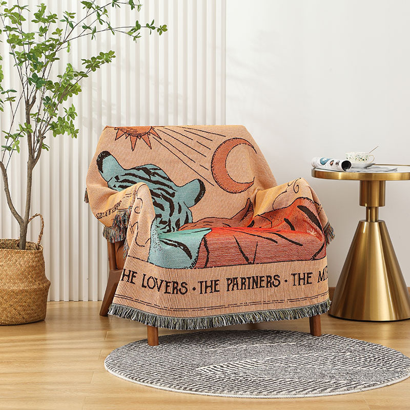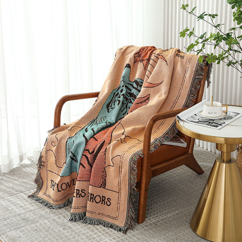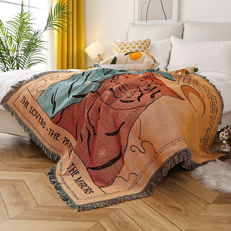 Ins Style Blanket Tapestries Cover Blanket Camping Blanket Illustration Casual Blanket Decorative Bed End Blanket American Style Retro Sofa Blanket