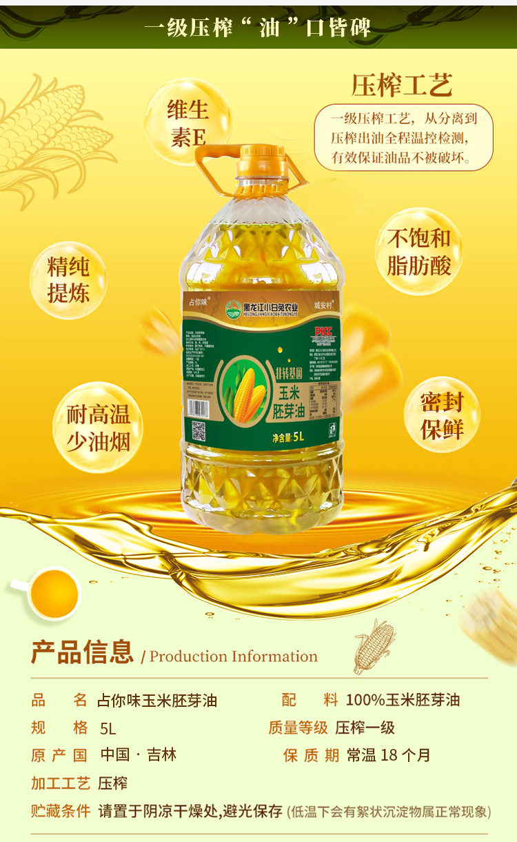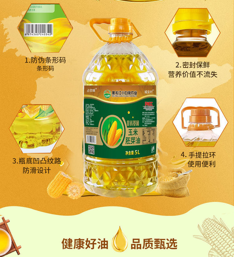 Take up 5 liters of your flavor corn oil grade I pressed corn germ oil non-GM edible oil big barrel wholesale