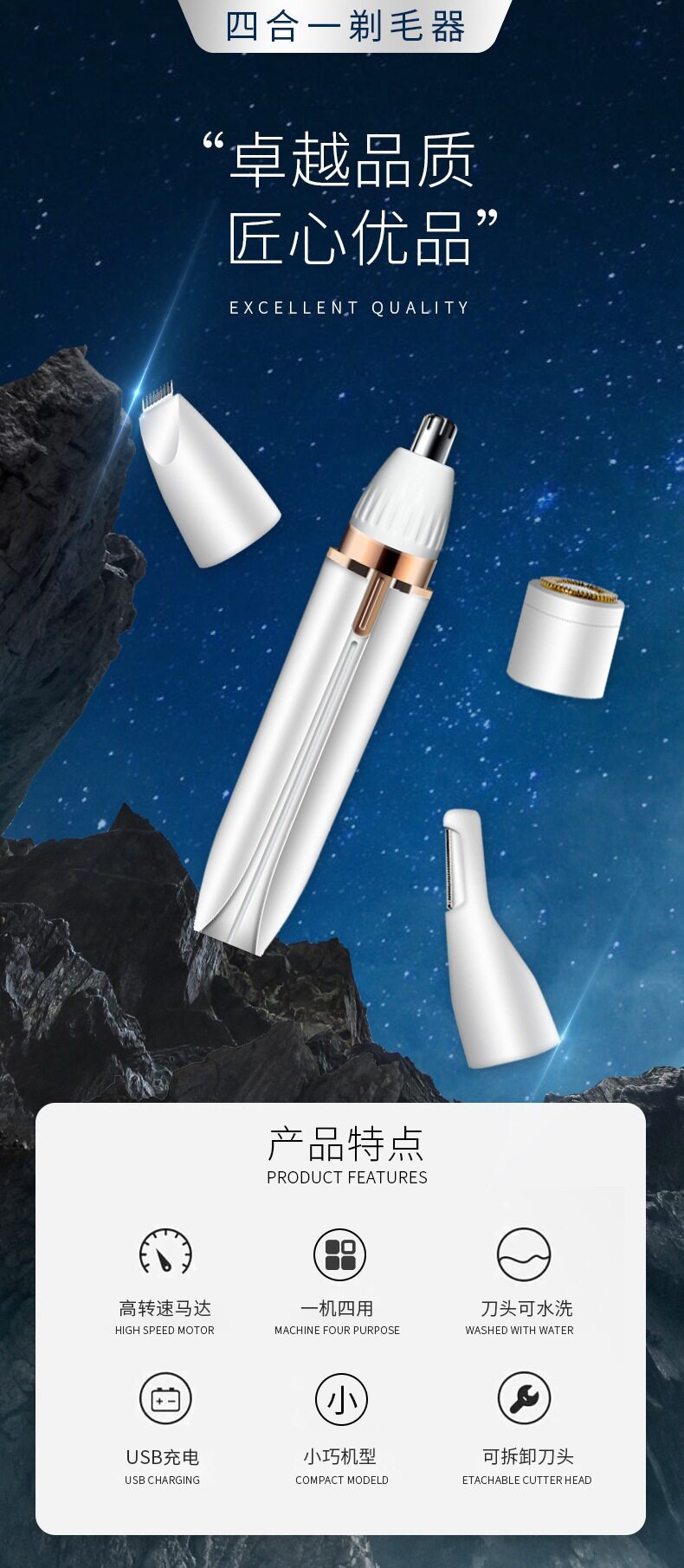Four-in-one electric shaver trimmer mini shaver trimmer waterproof portable multifunctional