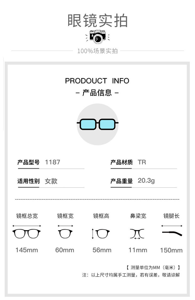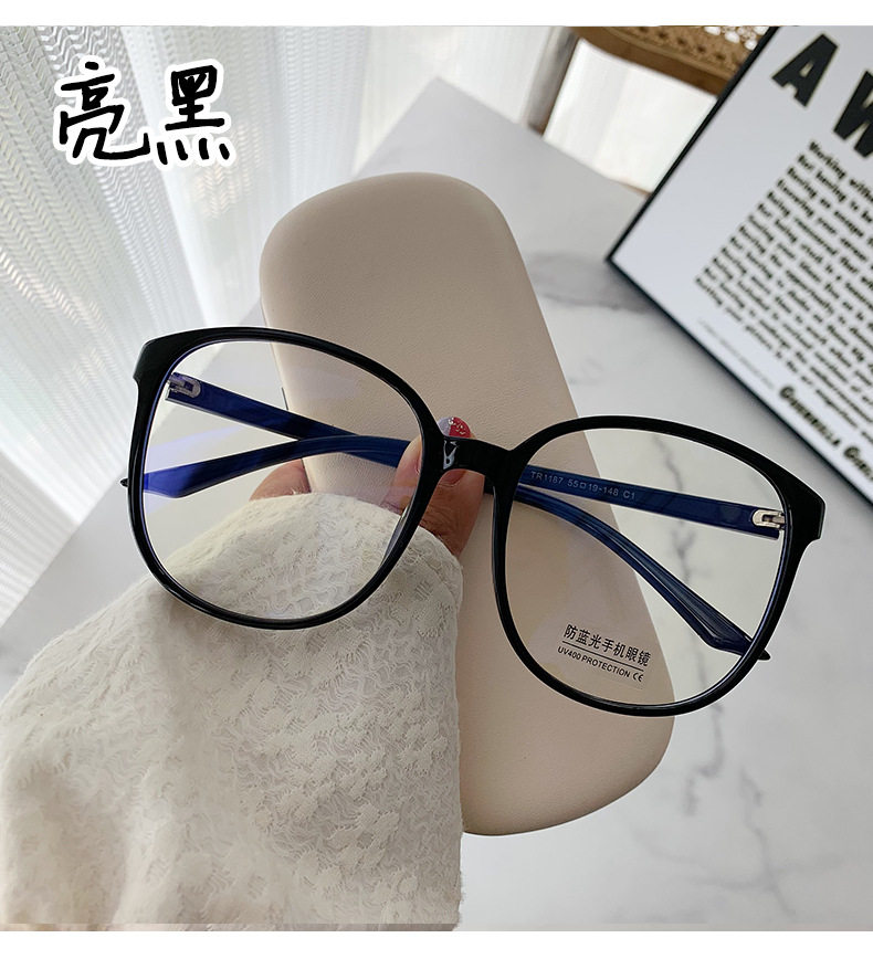 1187 Vintage Plain Tr Frame Women's Fashionable Large Face Slimming Anti-Blue Light Myopia Glasses Men's Wholesale Transparent Frame