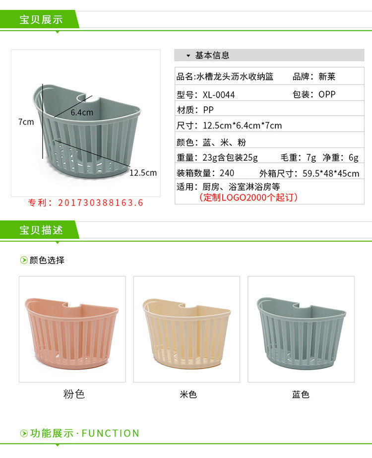 Kitchen sink drain storage basket button faucet hanging basket dish sink sponge drain rack wholesale