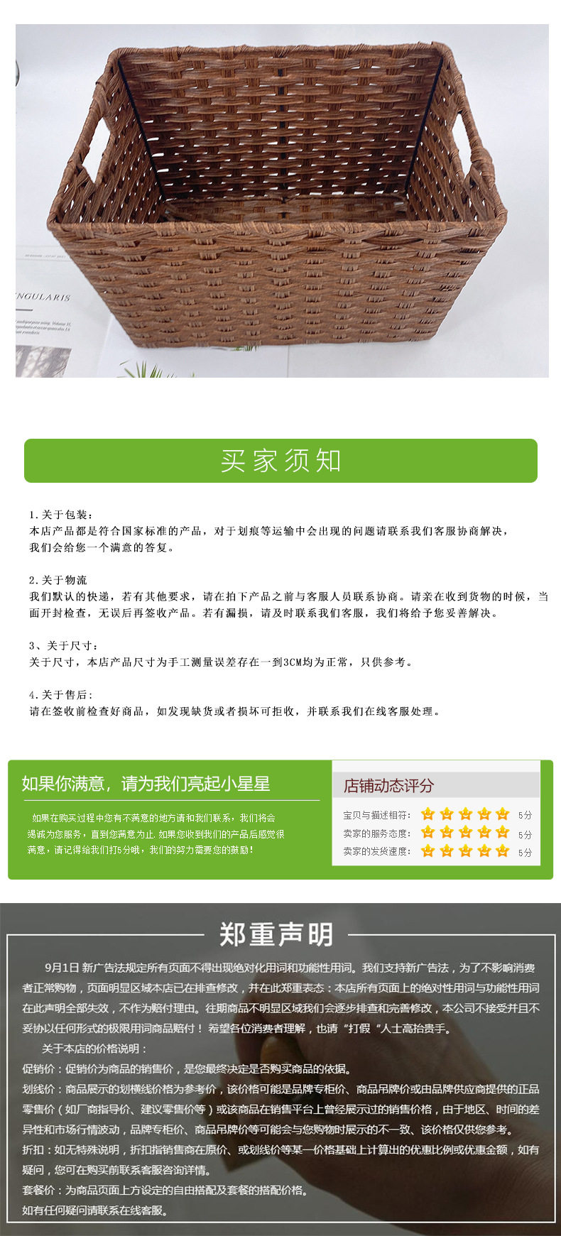 Dirty Clothes Basket Plastic Rattan Cabinet Storage Basket Cloakroom Cabinet Storage Basket Plaid Basket Arrangement Basket Rectangular