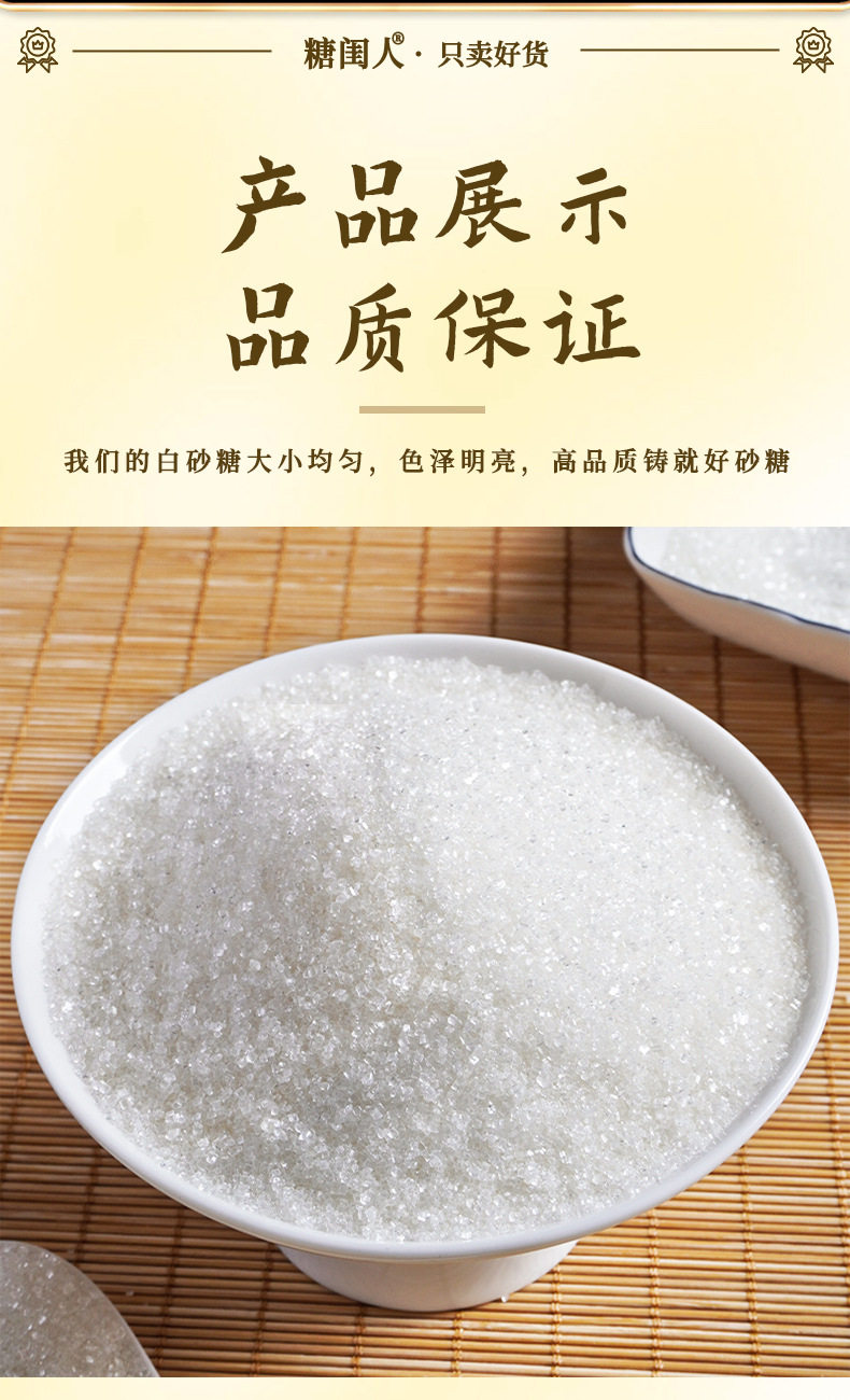 | Packaging specifications | 1000gx1 bags of white sugar,White sugar 1000gx2 bags,White sugar 1000gx3 bags,White sugar 500gx1 bag,White sugar 500gx2 bags,White sugar 500gx3 bags,White sugar 500gx5 bags,White sugar 200gx1 bag,White sugar 200gx5 bags |