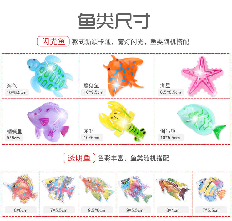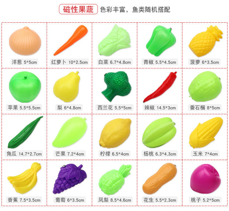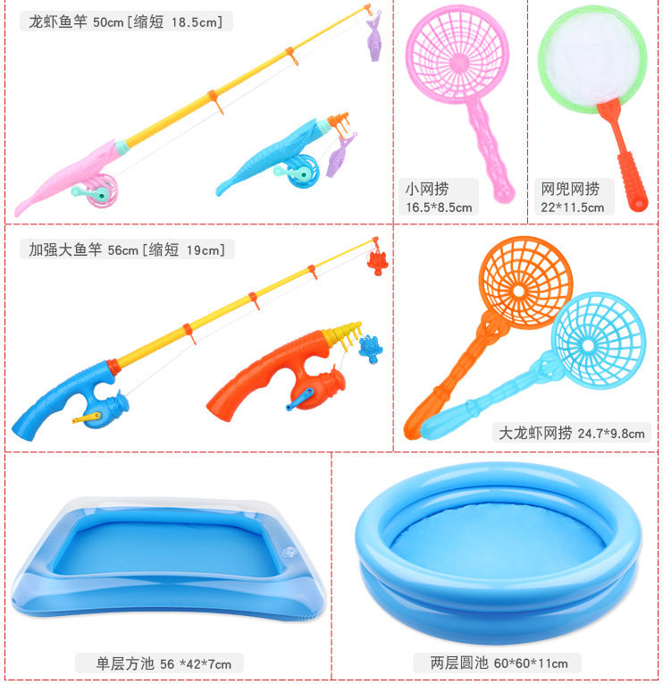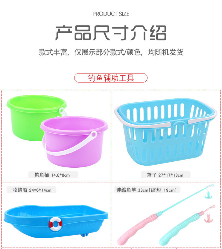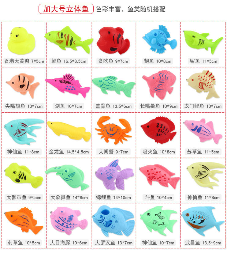 | Color | Magnetic double-sided three-dimensional fish * 1,Magnetic Plus Size Double-sided Stereo Fish * 1,Magnetic fruits and vegetables * 1,Magnetic Pinch Sound * 1,Magnetic transparent fish * 1,Magnetic Flash Fish * 1,33cm telescopic rod * 1,Upgraded 50cm lobster Rod * 1,Upgraded 56cm Reinforced Large Rod * 1,16.5cm small net fishing * 1,22cm mesh net fishing * 1,24.7cm lobster net fishing * 1,Keg * 1,Fishing boat * 1,Large storage basket * 1,56*42*7cm square pool + pump * 1,60*60*11cm double round tank + pump * 1,60*60*22cm three-layer Rainbow Pool + pump * 1,Fish-shaped spare magnet * 1 |