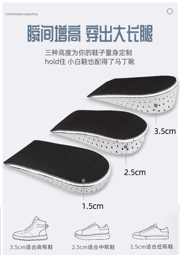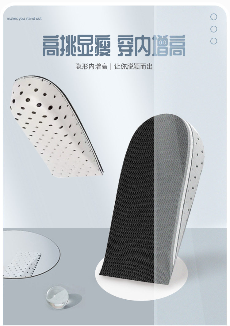 Memory Foam Heightening Insole for Men and Women, Invisible Inner Heightening Half Pad, Anti-Pain, Not Tired after Standing for a Long Time, Martin Boots Heightening Pad Wholesale