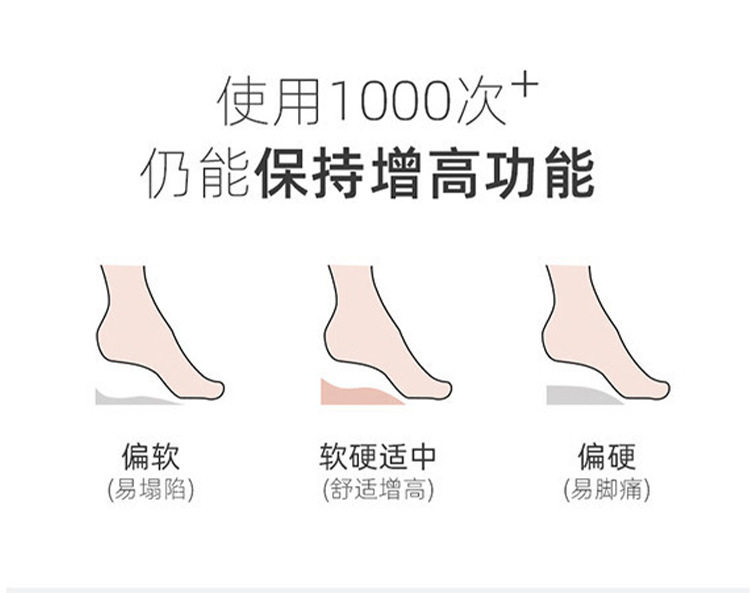 | Insole function | High elastic shock absorption/sweat absorption and ventilation/invisible height increasing |
