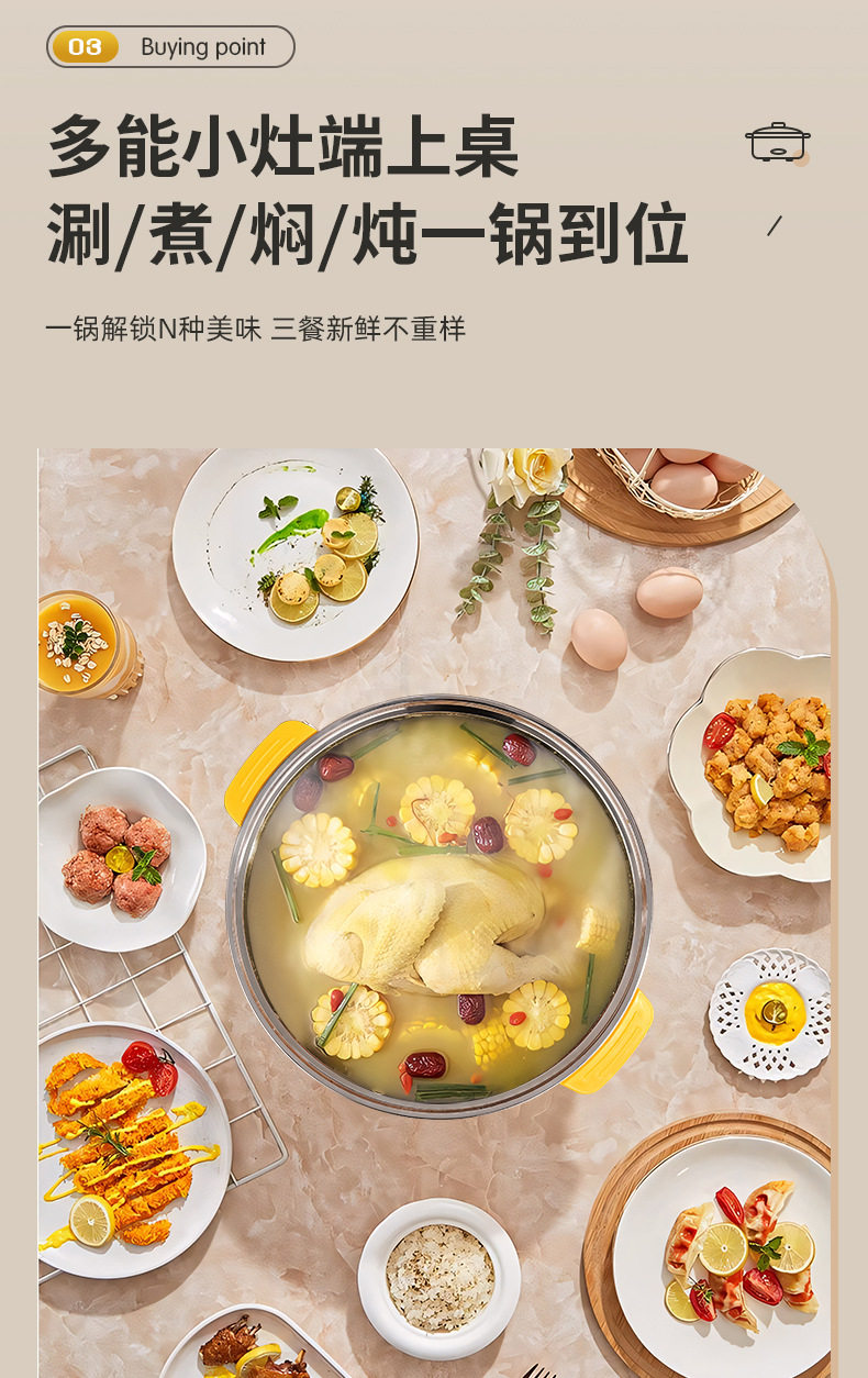 | Electric heating/hot pot function | Steamed,Boiled,Stew,Braised,Hot pot |
