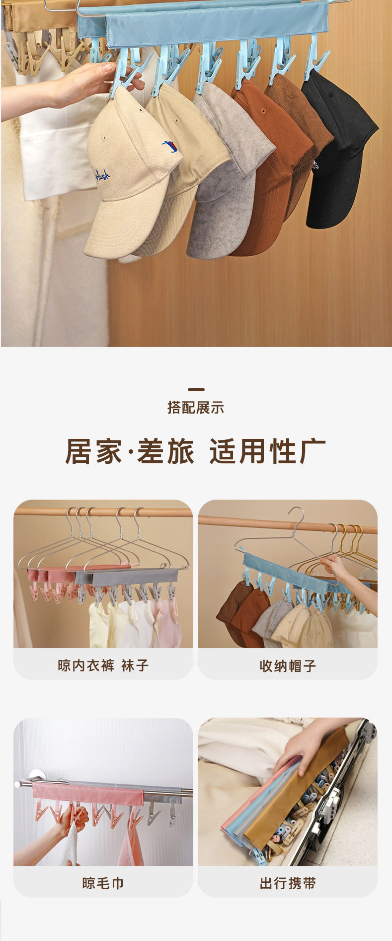New travel fabric hanger multi-functional folding hanger clip portable clothes hanger socks clip underwear clip Macaron
