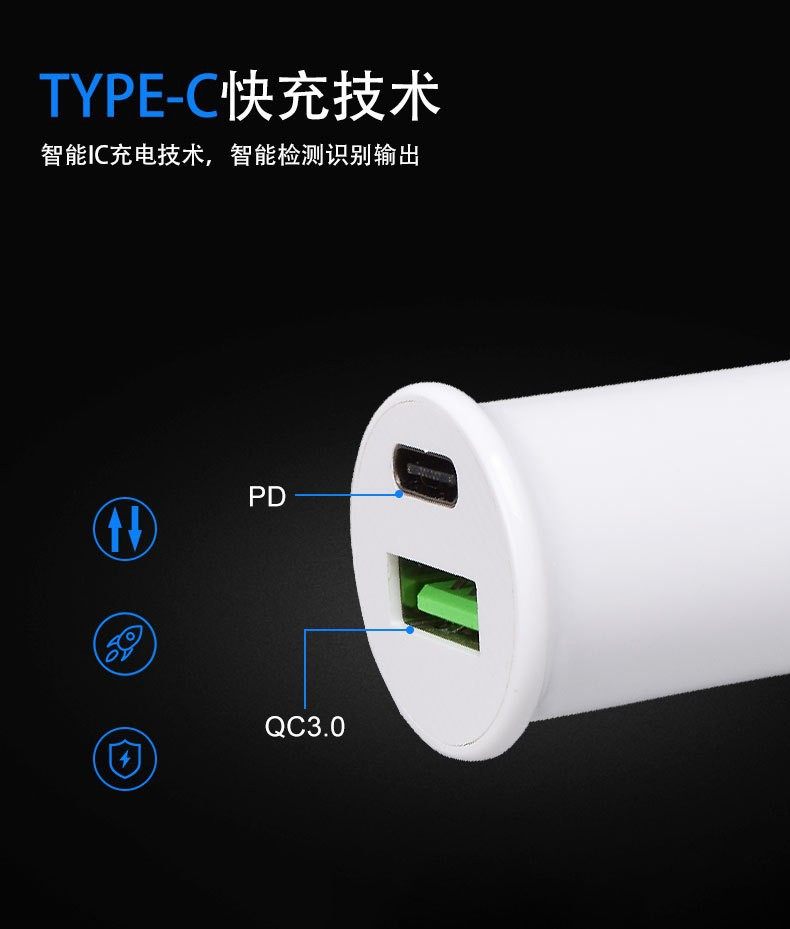 New cross-border PD QC3.0 20W mini car charger cigarette lighter A C dual-port car charger factory direct sales