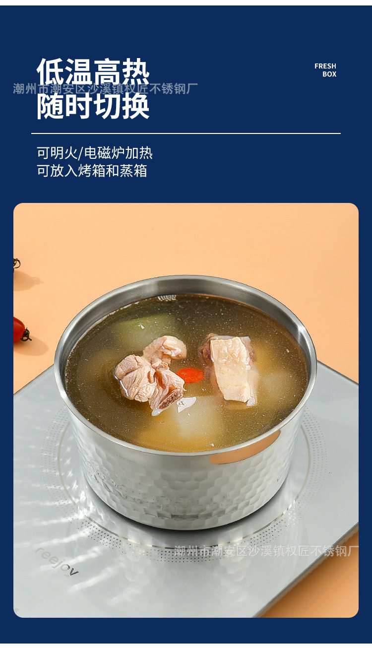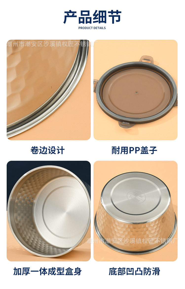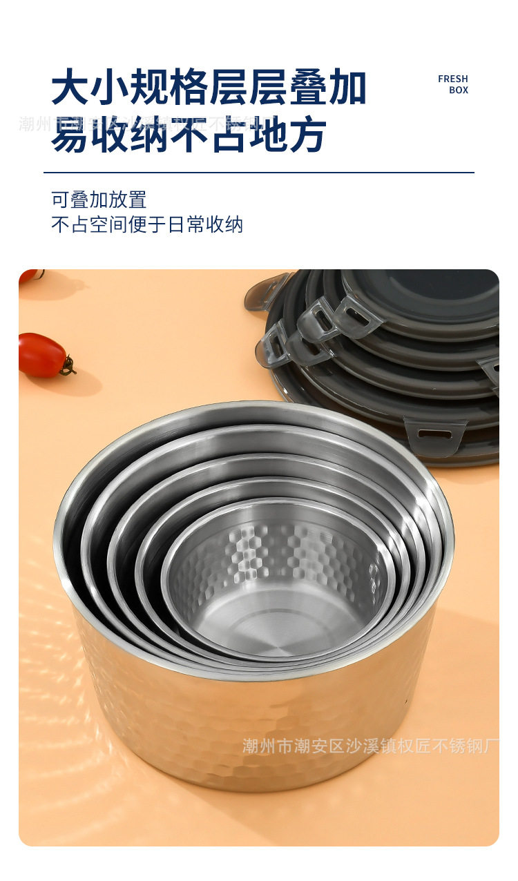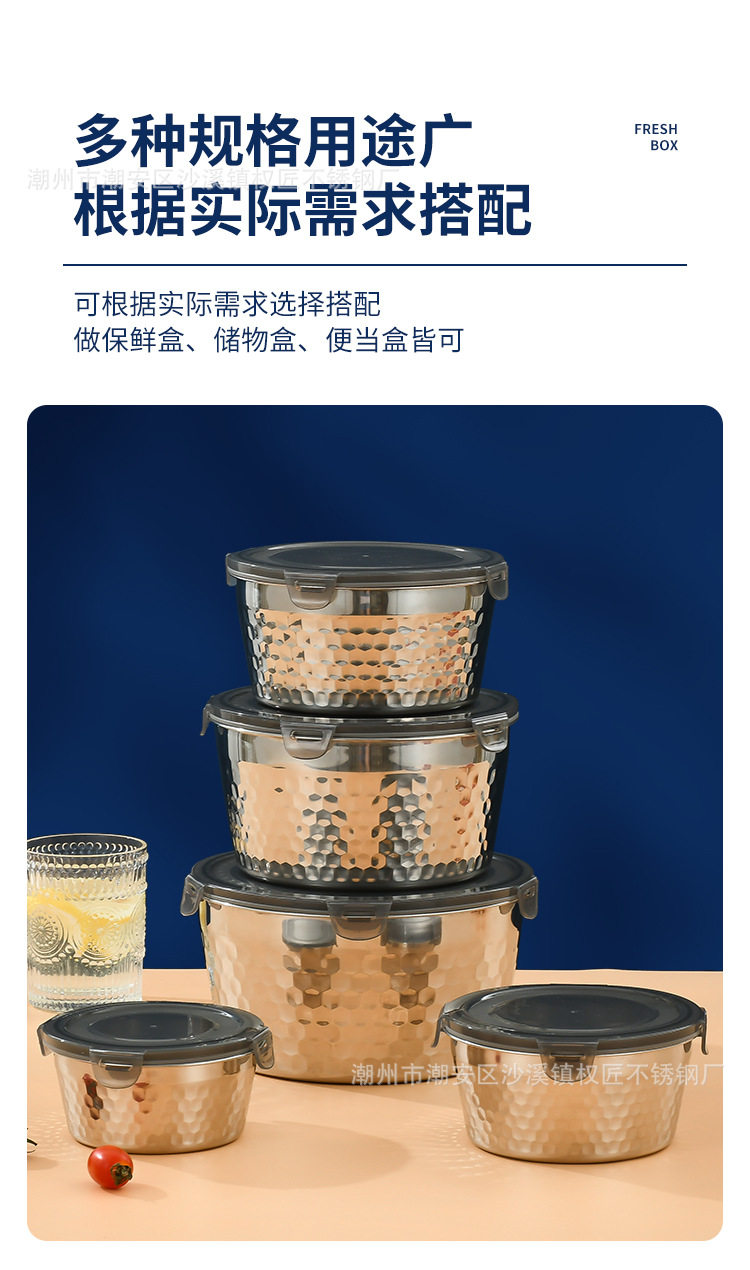 | Specifications | 304 hammered crisper [400ml] 12cm,304 hammered crisper [800ml] 14cm,304 hammered crisper [1200ml] 16cm,304 hammered crisper [1800ml] 18cm,304 hammered crisper [2400ml] 20cm |