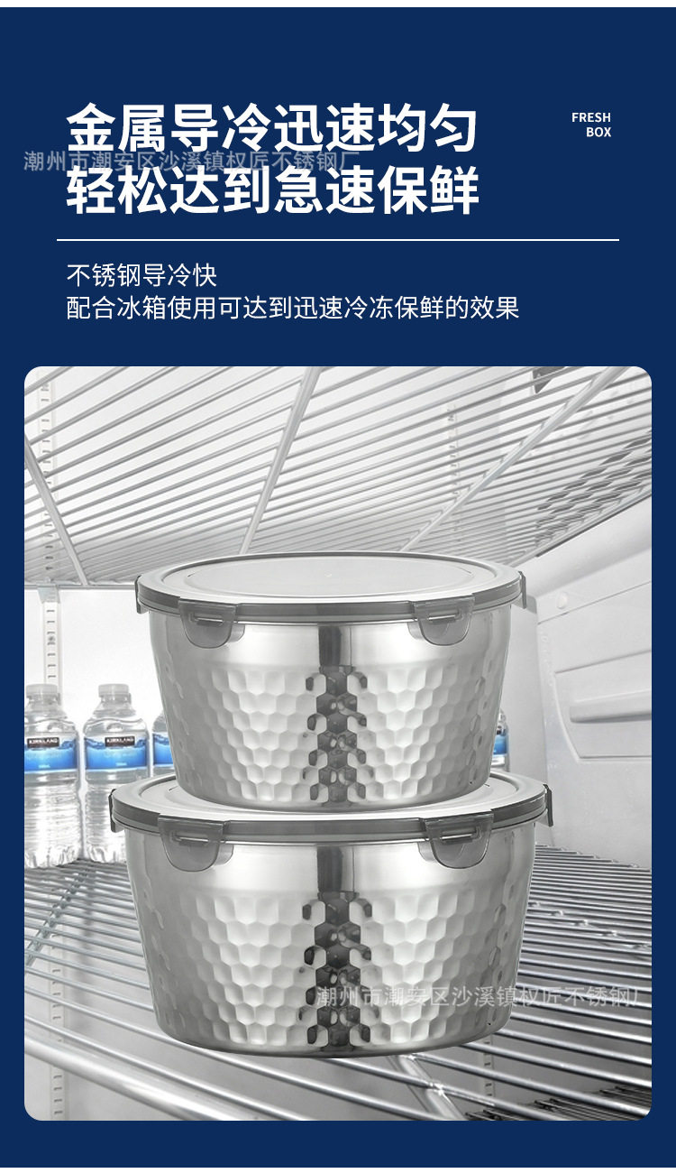 Crisper food grade stainless steel food storage box sealed 304 refrigerator frozen packing box crisper wholesale