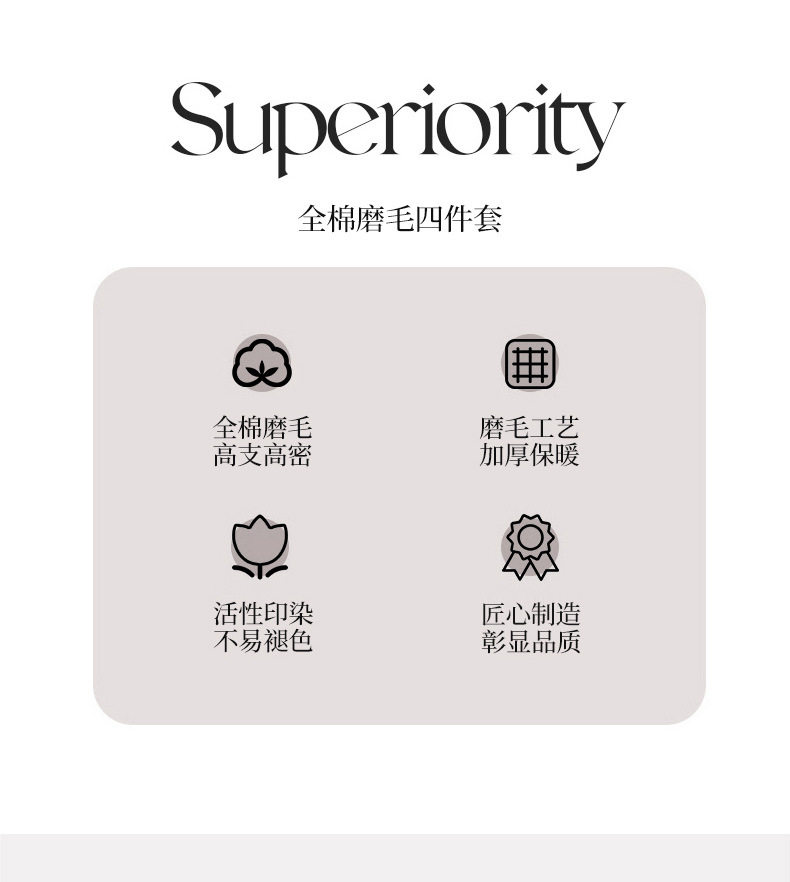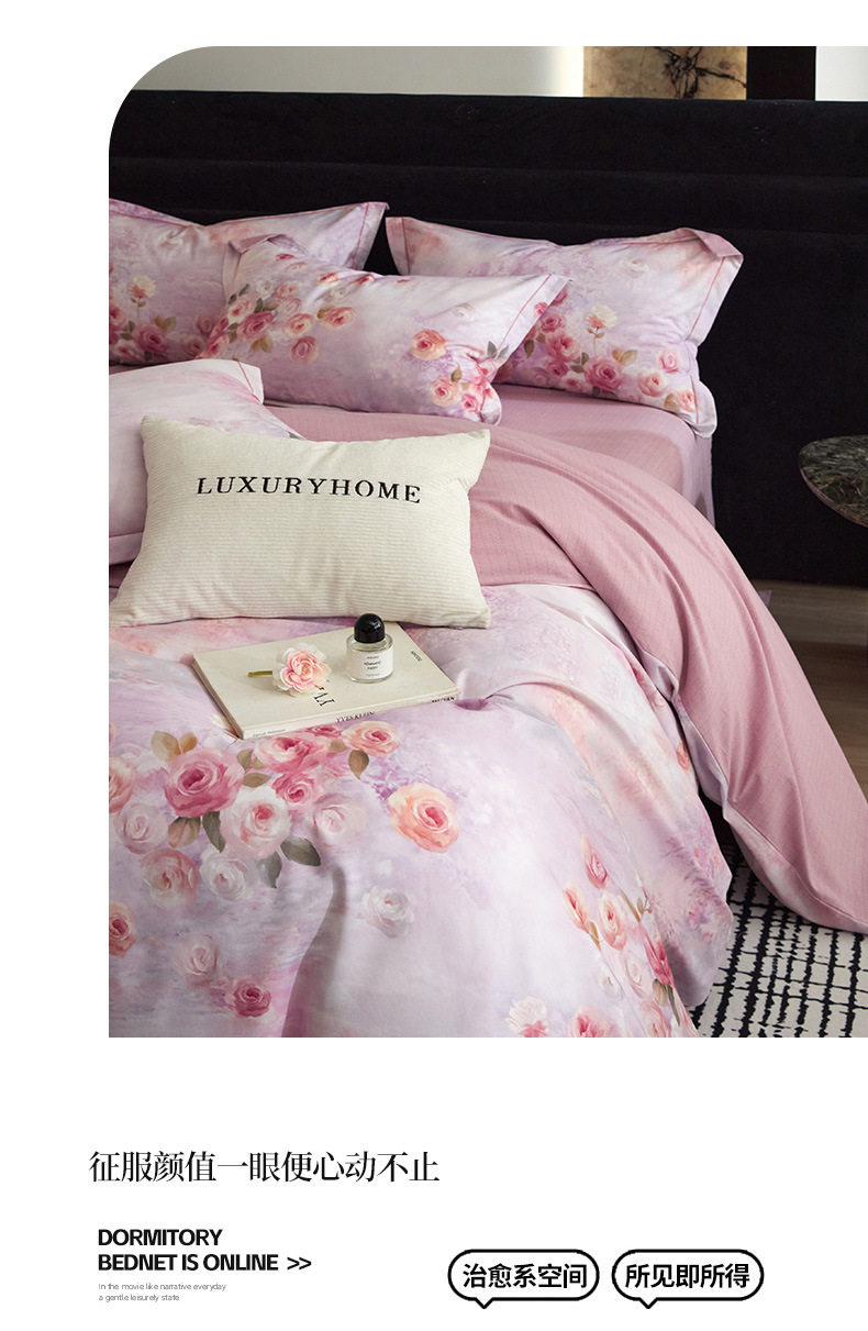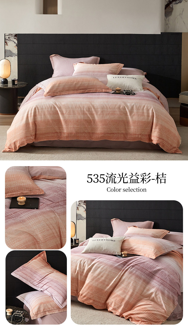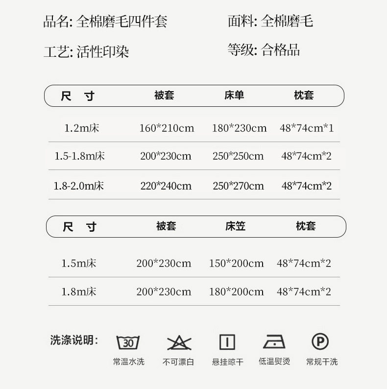| Size specifications | 0.9m bed 1.2m single three-piece set [suitable for 150*200cm quilt core],1.5m bed sheet four-piece set [suitable for 200*230cm quilt core],1.8m bed sheet four-piece set [suitable for 200*230cm quilt core],2.0m bed sheet four-piece set [suitable for 220*240cm quilt core],1.5m [fitted sheet] four-piece set (quilt cover 200*230),1.8m [fitted sheet] four-piece set (quilt cover 200*230),1.5m [fitted sheet] four-piece set (quilt cover 220*240),1.8m [fitted sheet] four-piece set (quilt cover 220*240) |