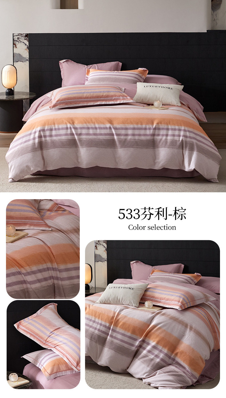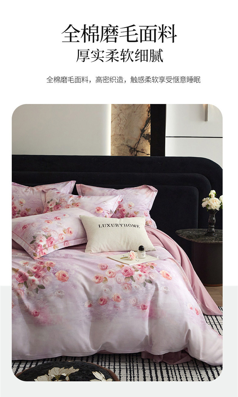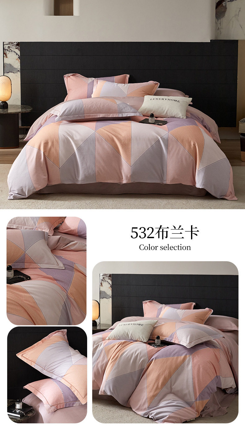 100% Cotton Brushed Four-Piece Set, Factory Pure Cotton Thickened Wedding Celebration Gift Bed Sheet Style Fitted Sheet Style Set