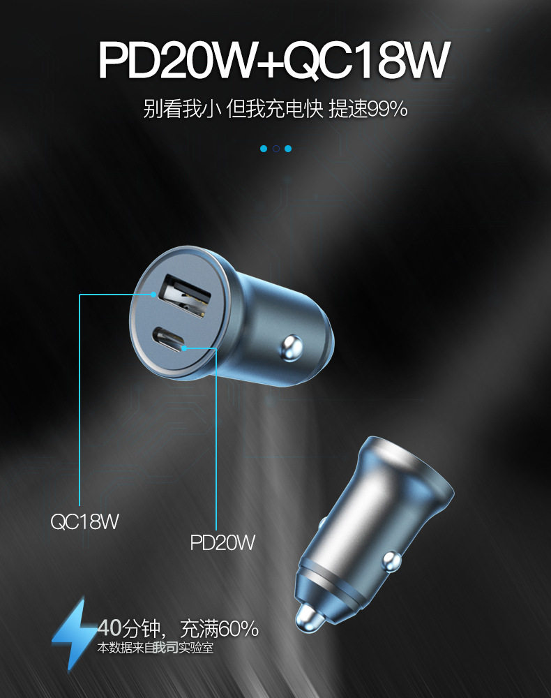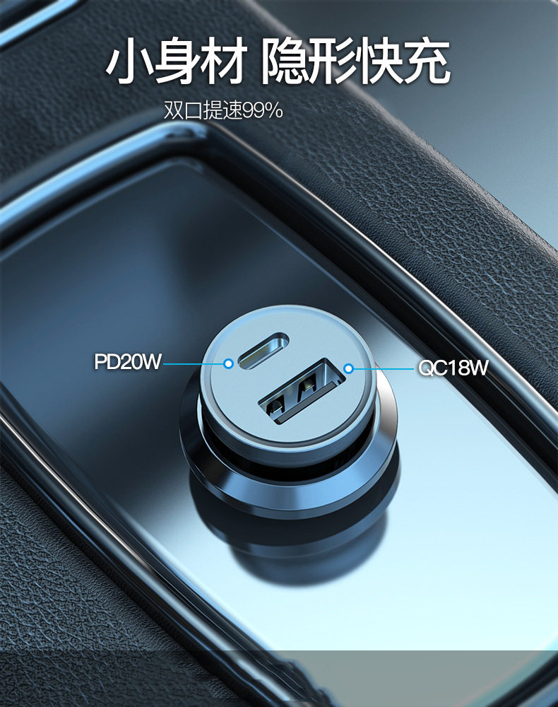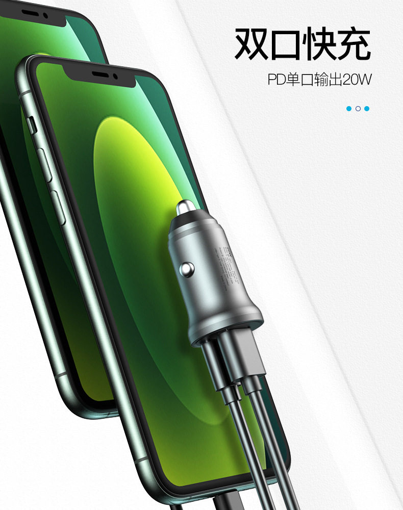 The new pd20w car charger for Apple Android mobile phone charging mini car charger qc3.0 fast charge