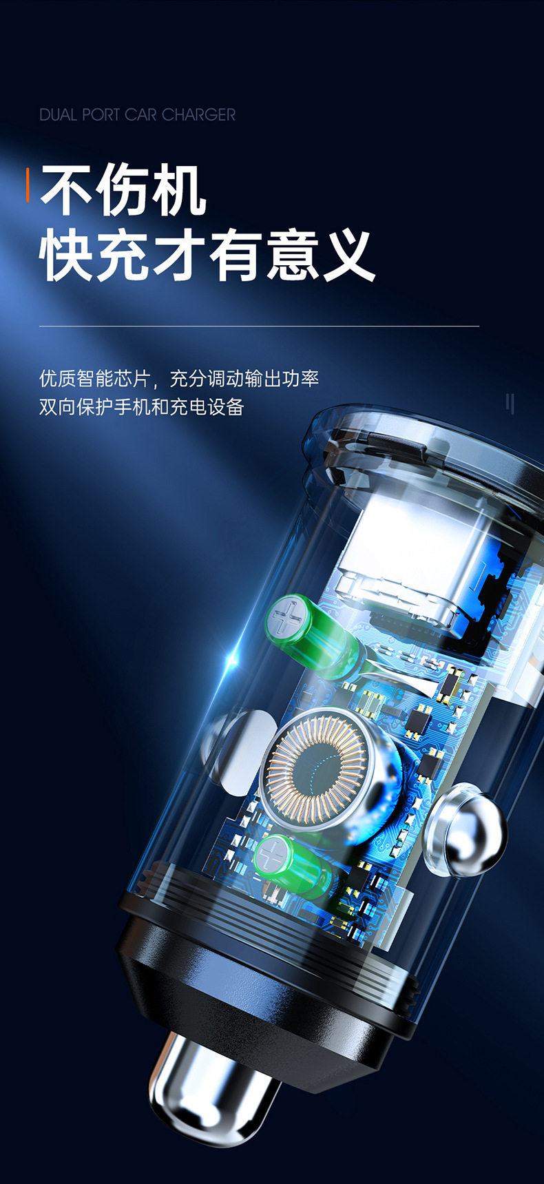 | Model | Mini two-port car charger (without packing box),Mini two-port car charger (with packing box) |
