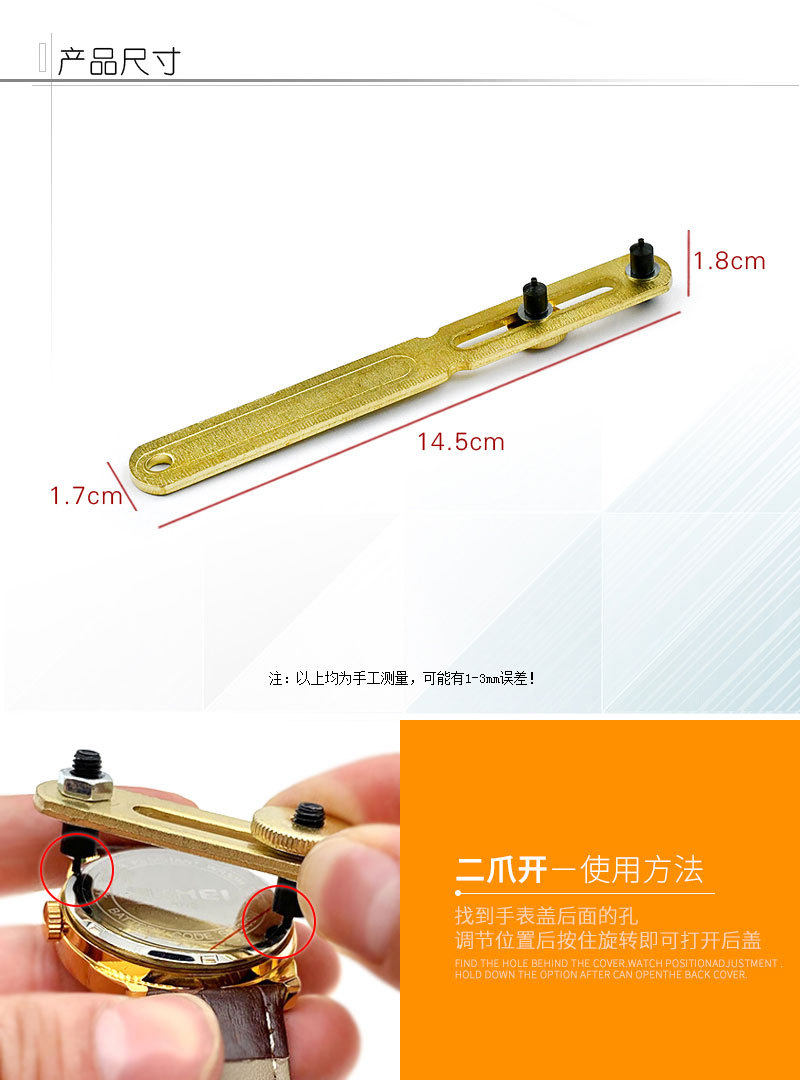 Professional watch repair tools two-jaw watch opener two-foot watch back cover wrench unscrew watch opener