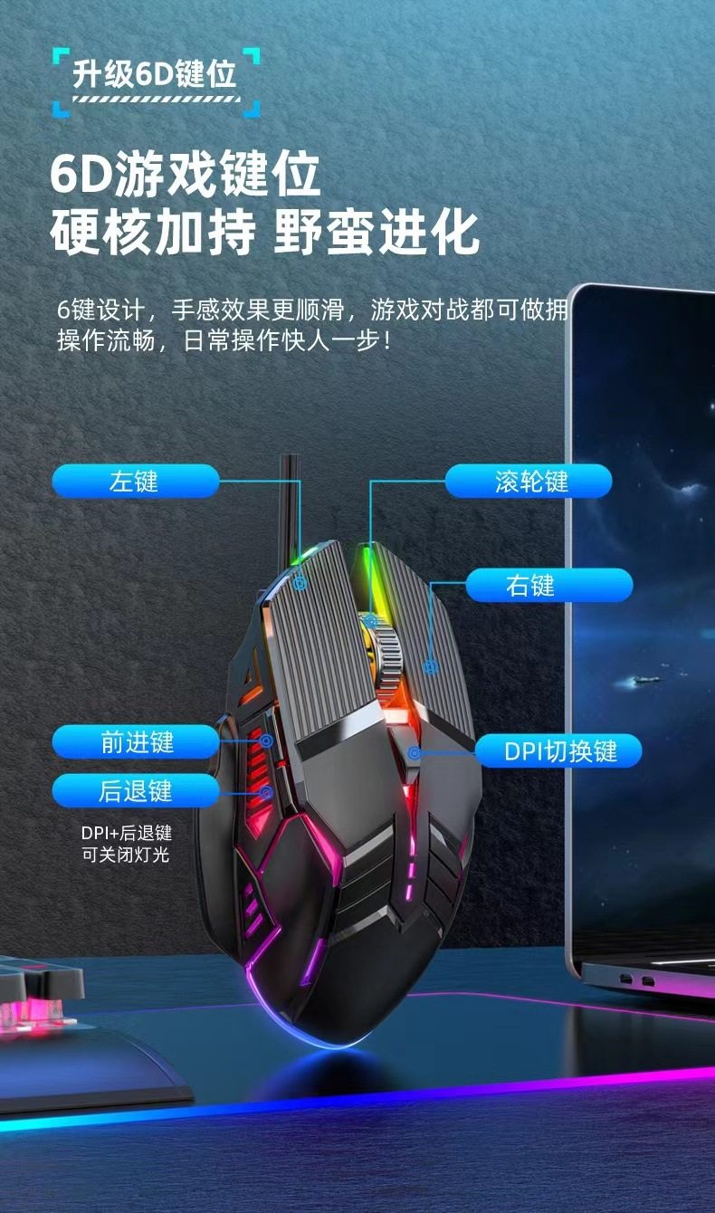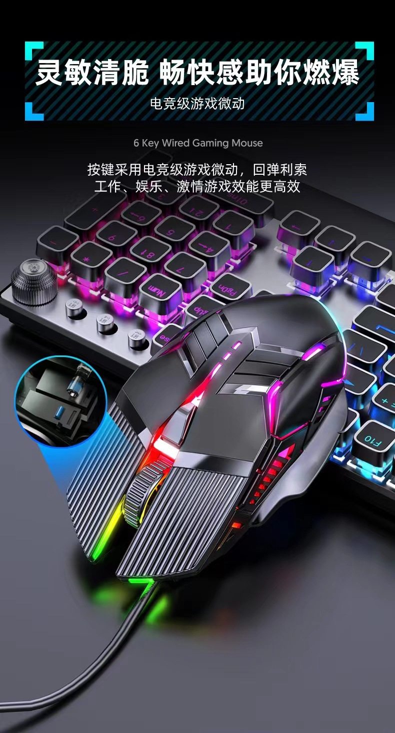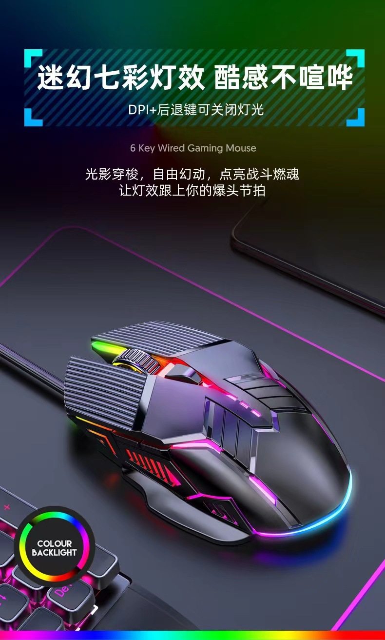 Cross-Border E-Commerce Spot Wholesale Wired Mouse 6D Luminous E-Sports Game Silent Colorful Glare Office Mouse