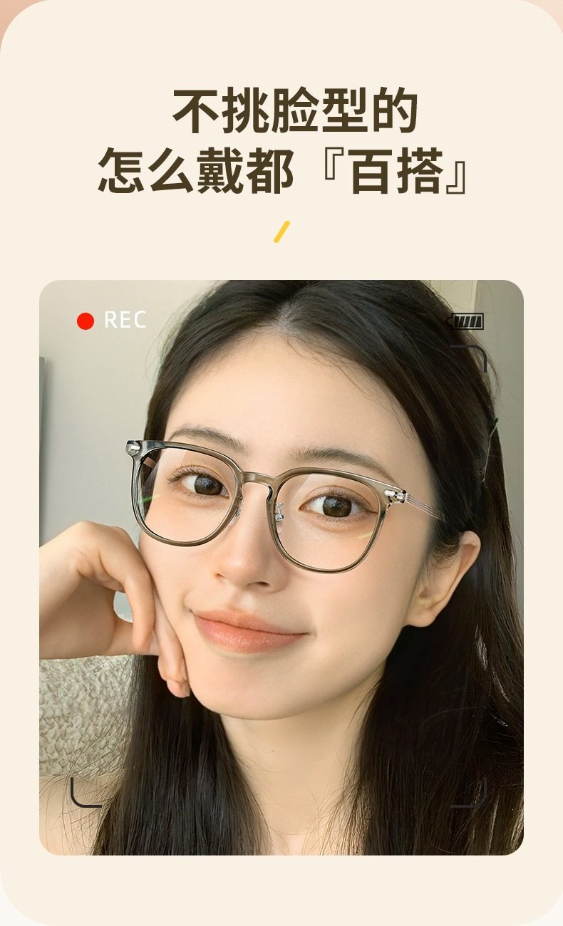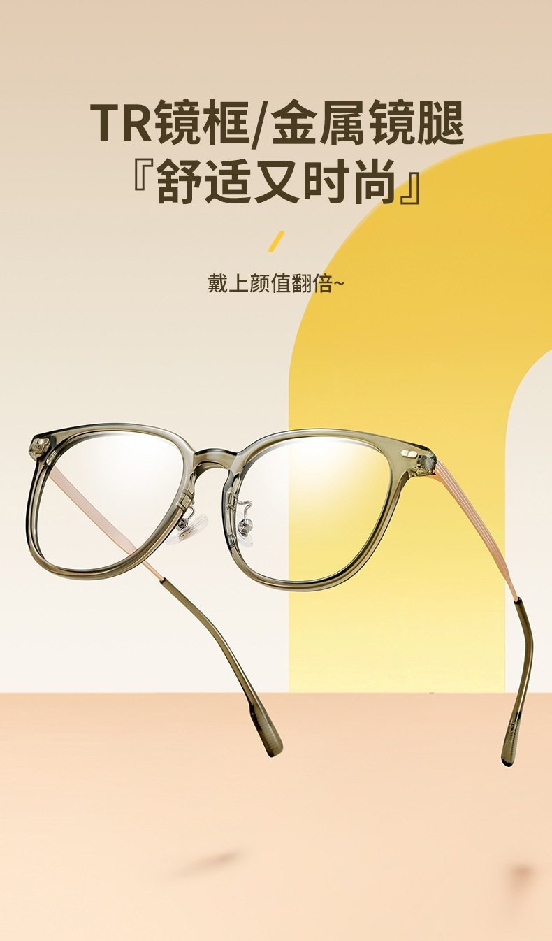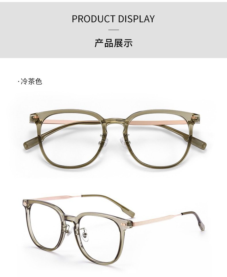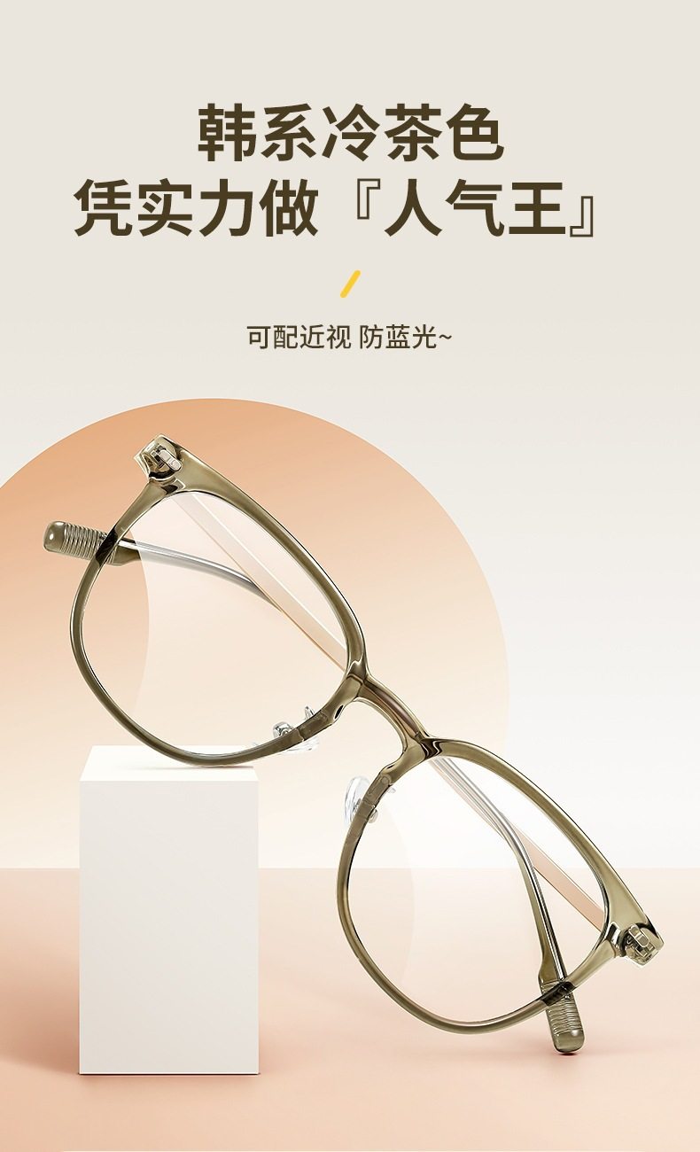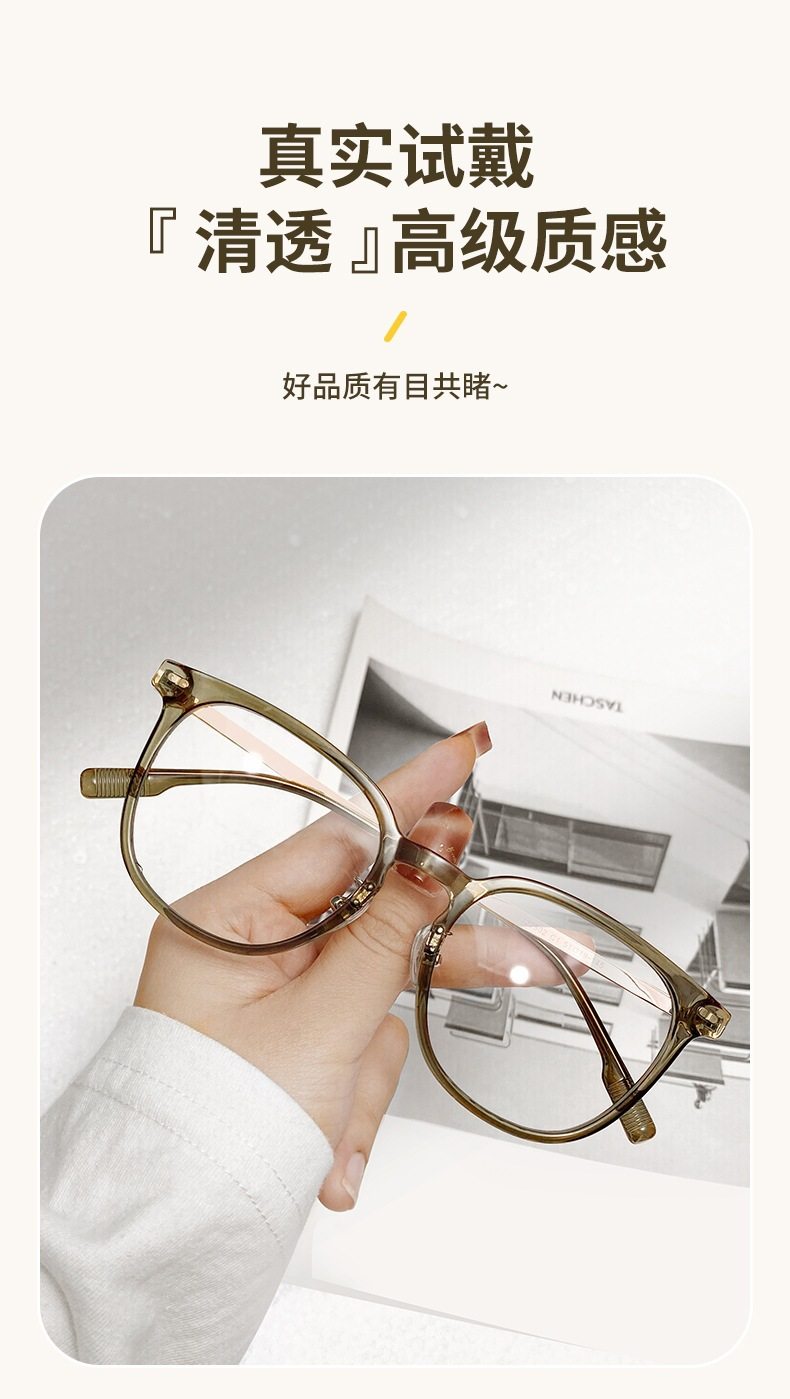 Cold tea color glasses frame for women with myopia ultra-light TR anti-blue light flat mirror for men without makeup artifact large frame for small face