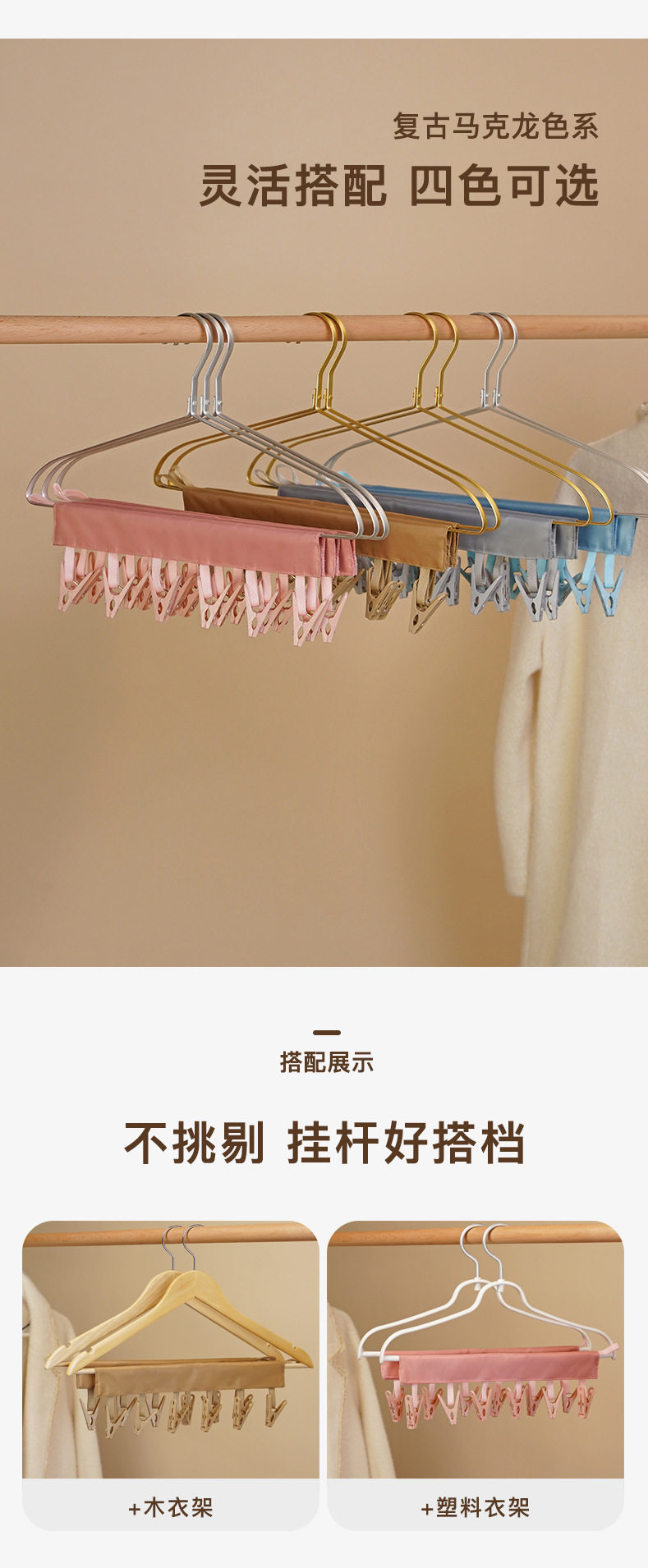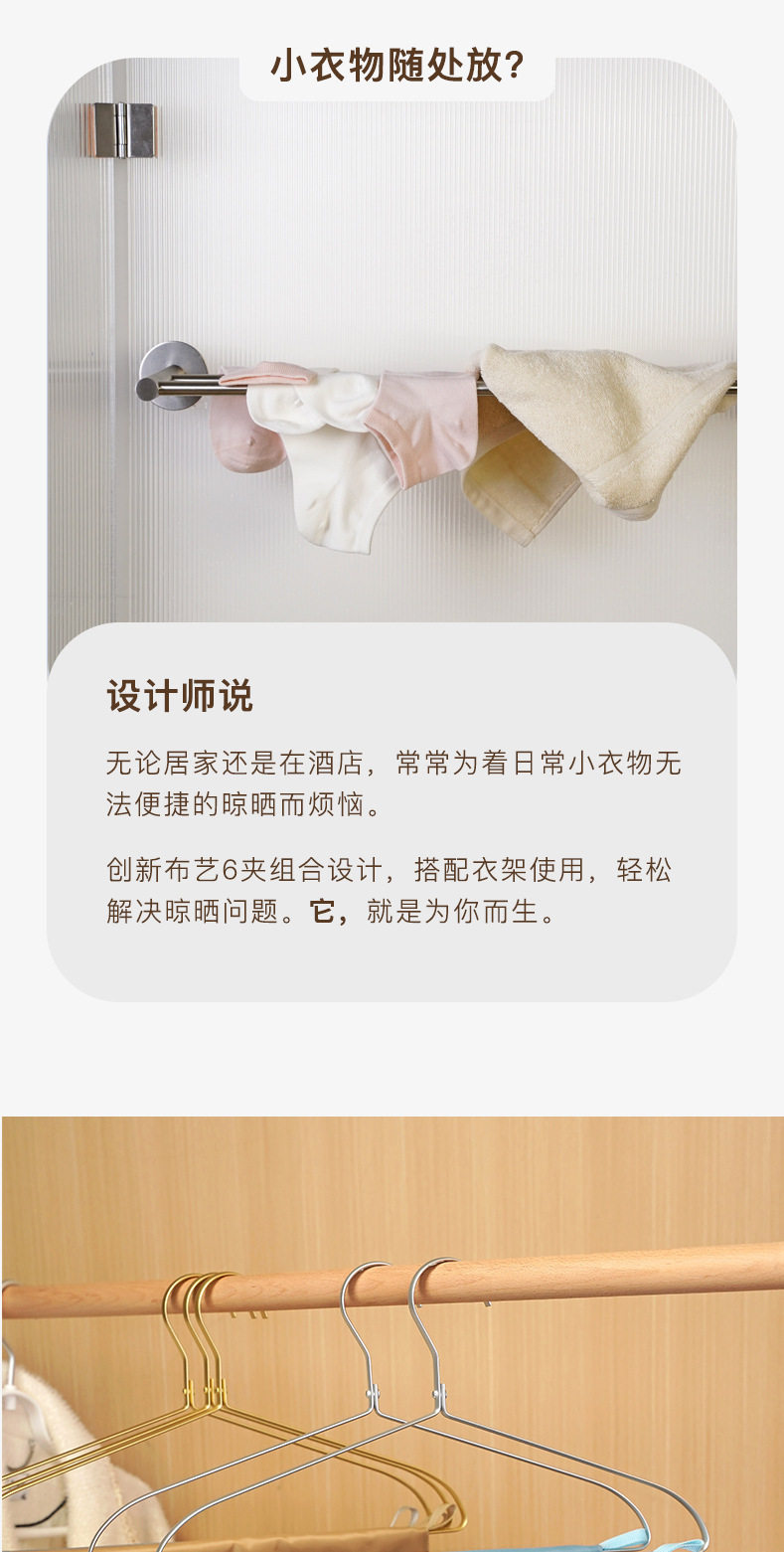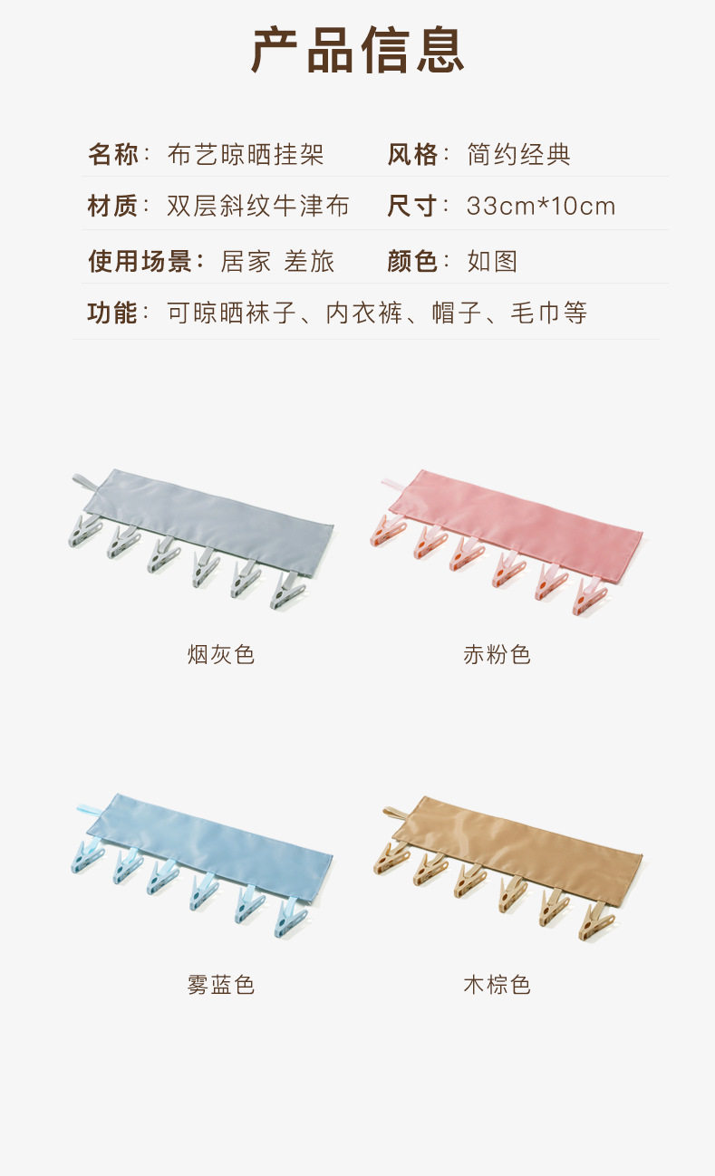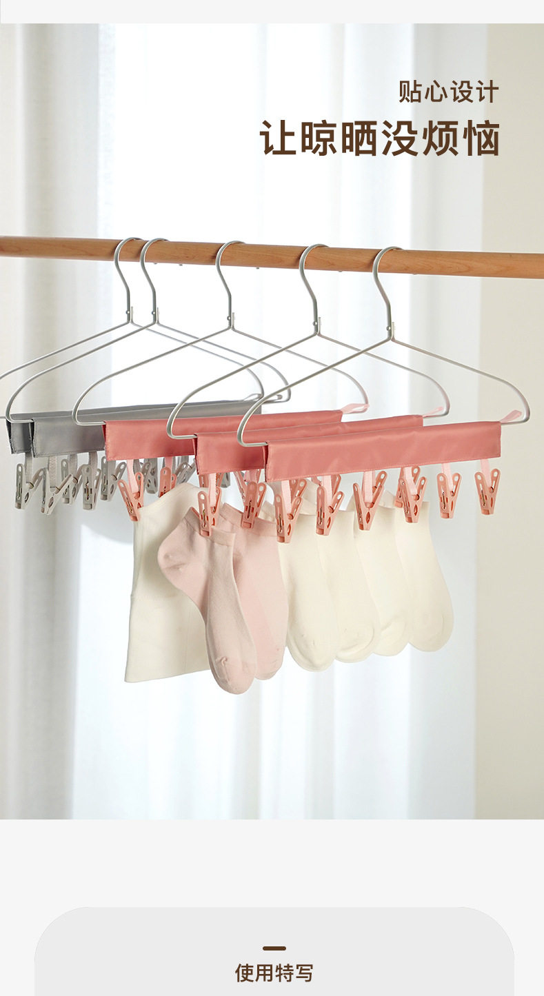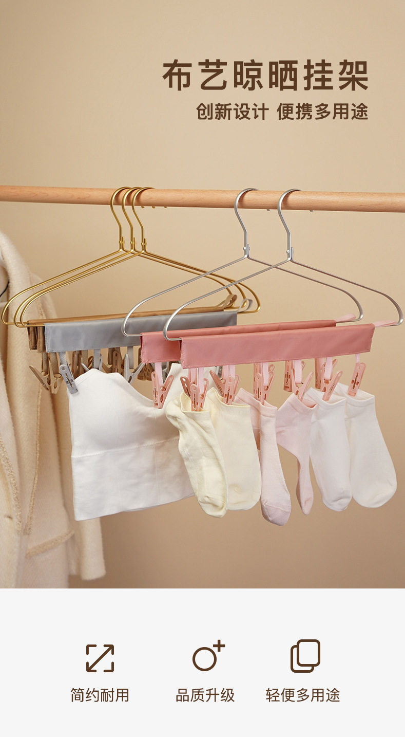 Travel portable fabric hanger bathroom multifunctional folding hanger 6 clips socks underwear clip wholesale