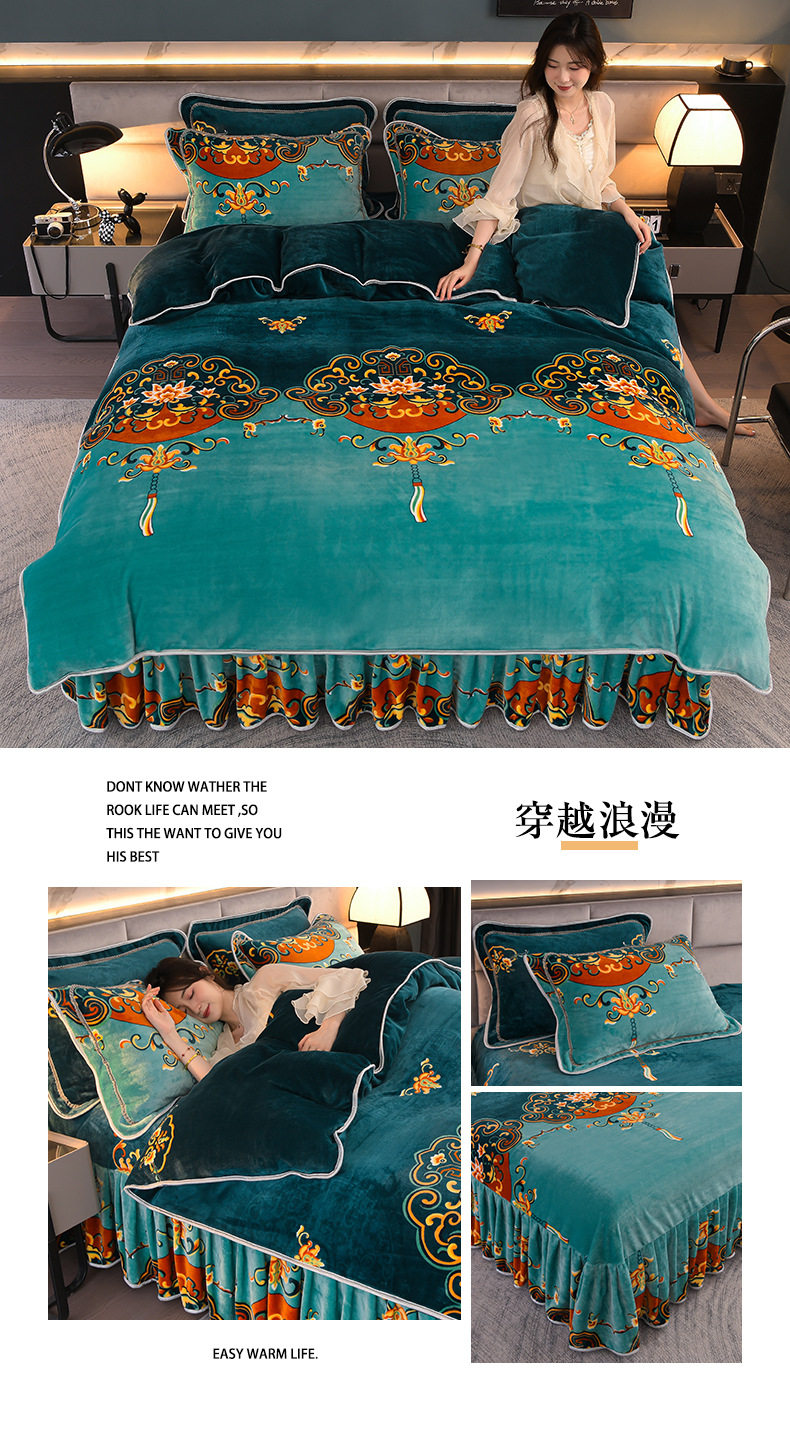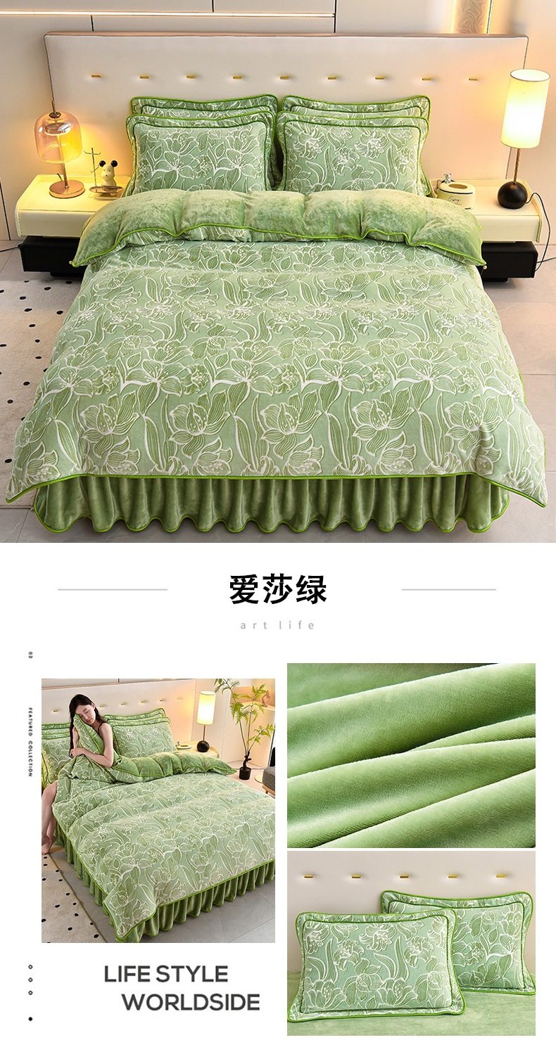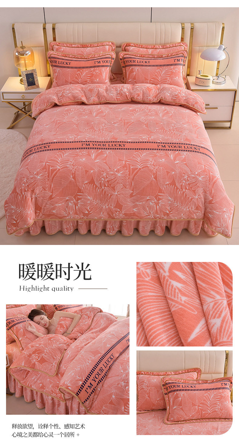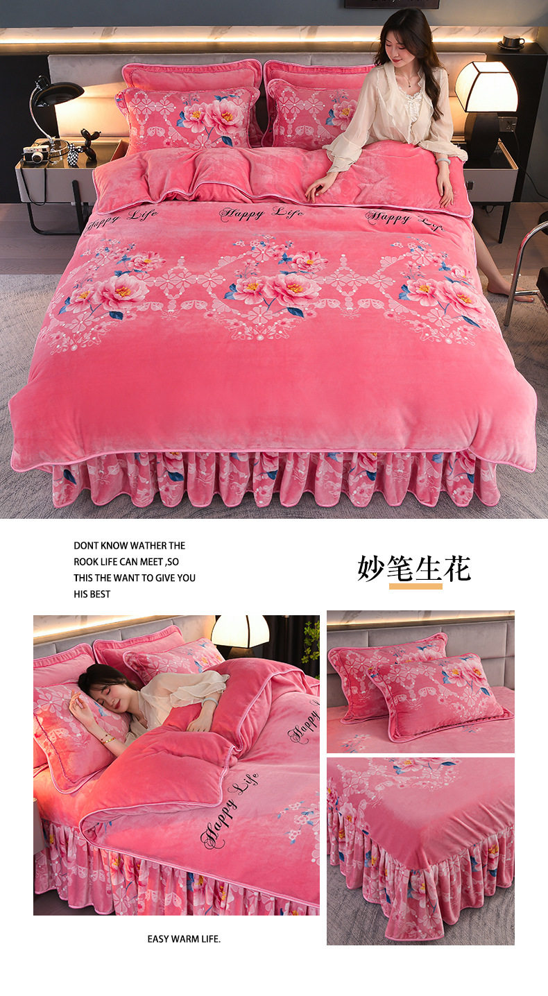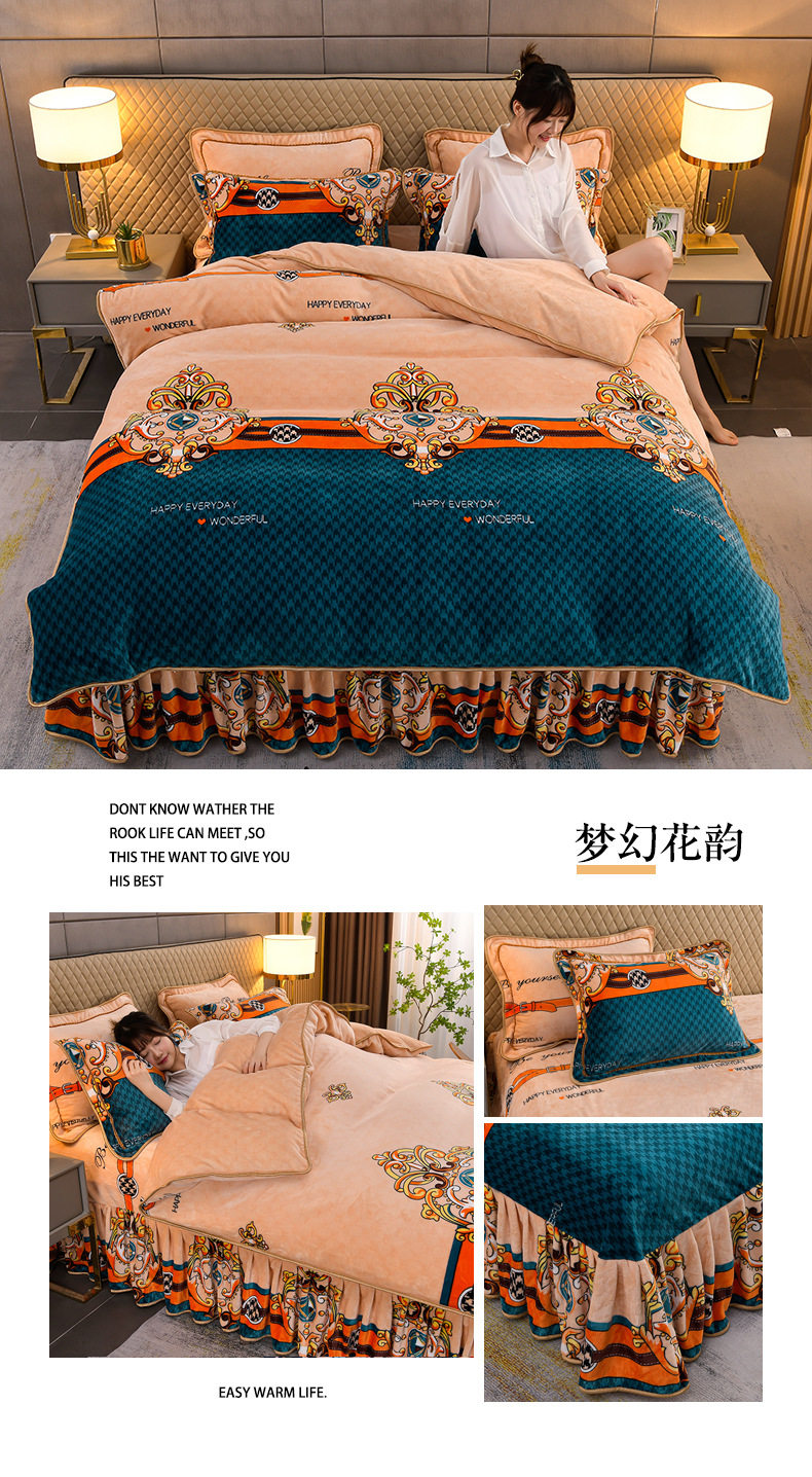 Thickened Milk Velvet Four-Piece Bed Skirt Set Plus Velvet Bed Sheets and Quilt Cover Winter Crystal Velvet Baby Velvet Three-Piece Set Wholesale