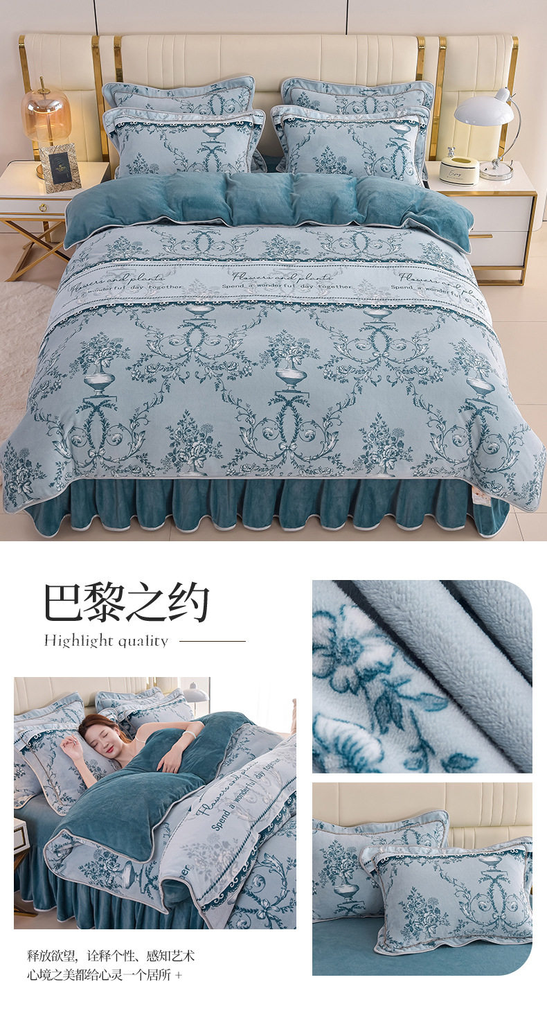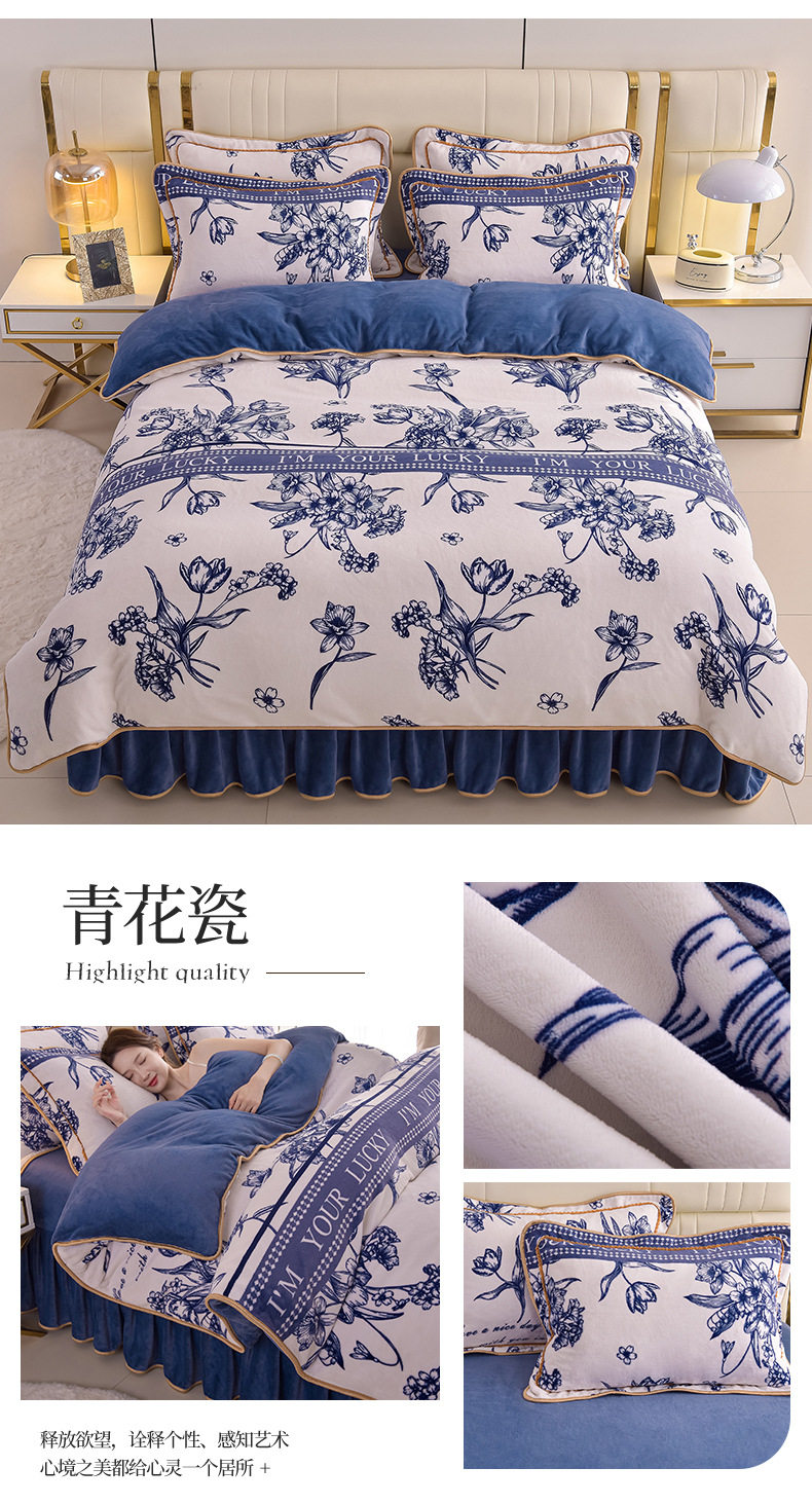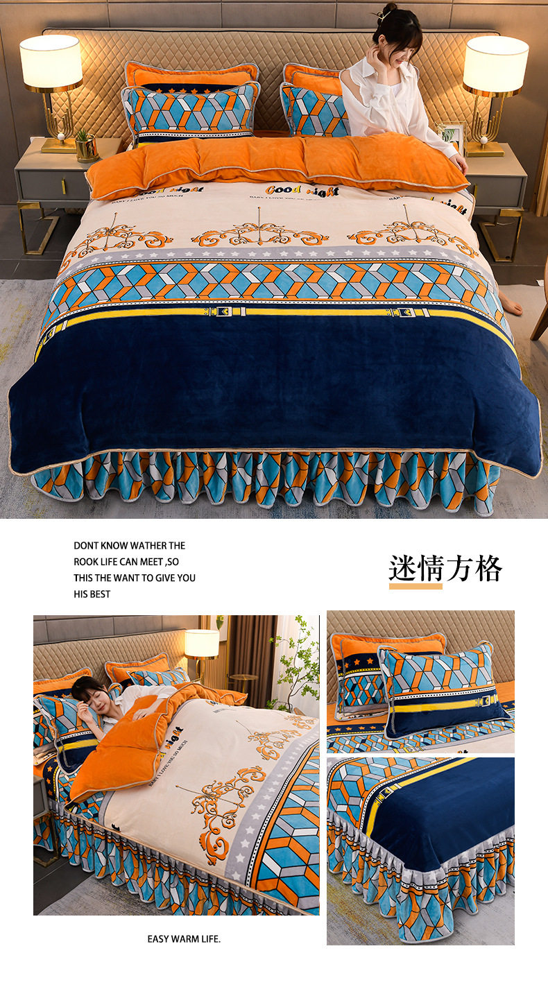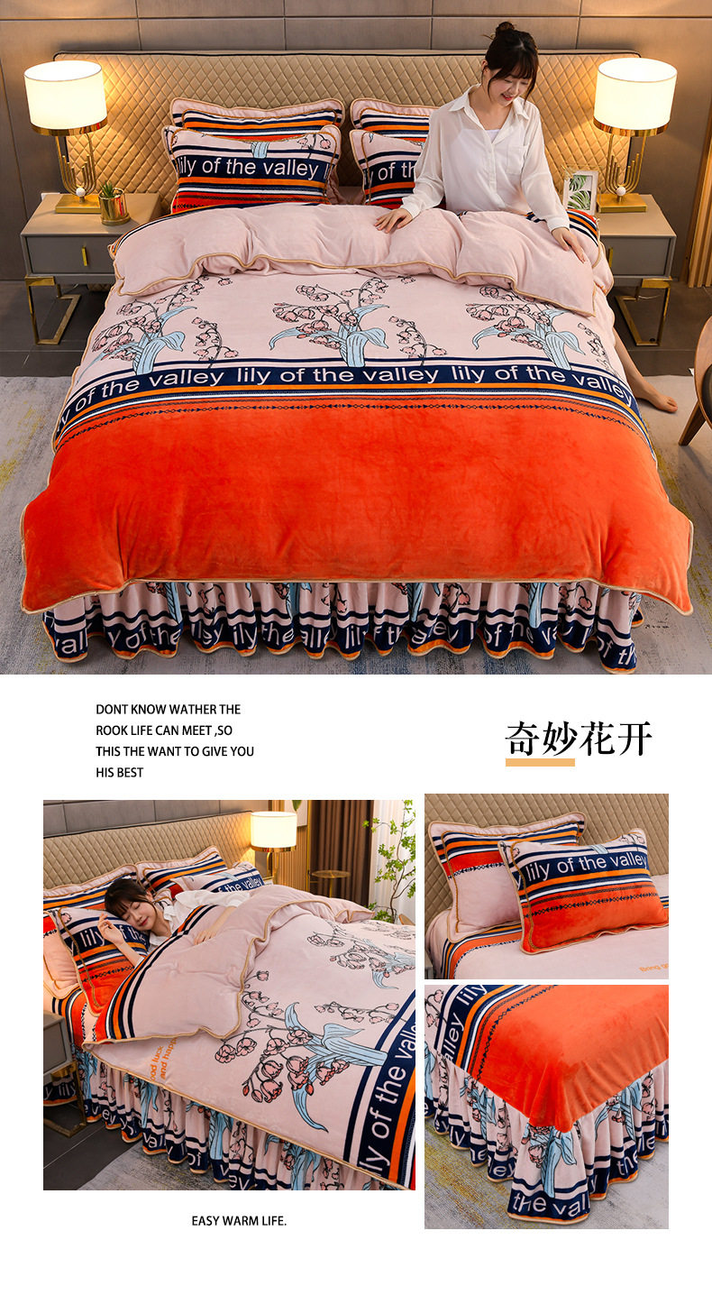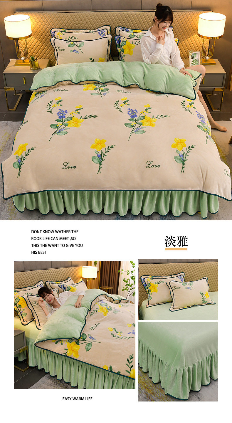Thickened Milk Velvet Four-Piece Bed Skirt Set Plus Velvet Bed Sheets and Quilt Cover Winter Crystal Velvet Baby Velvet Three-Piece Set Wholesale