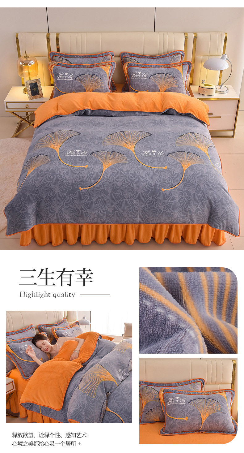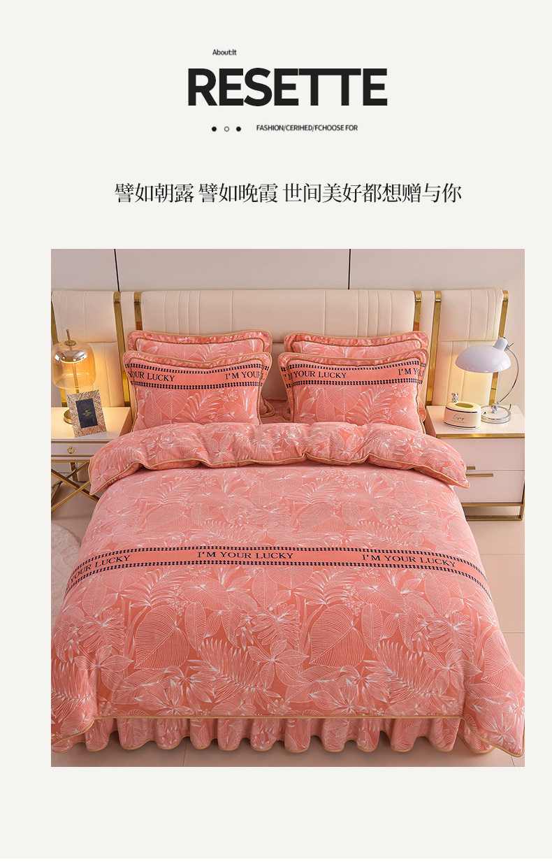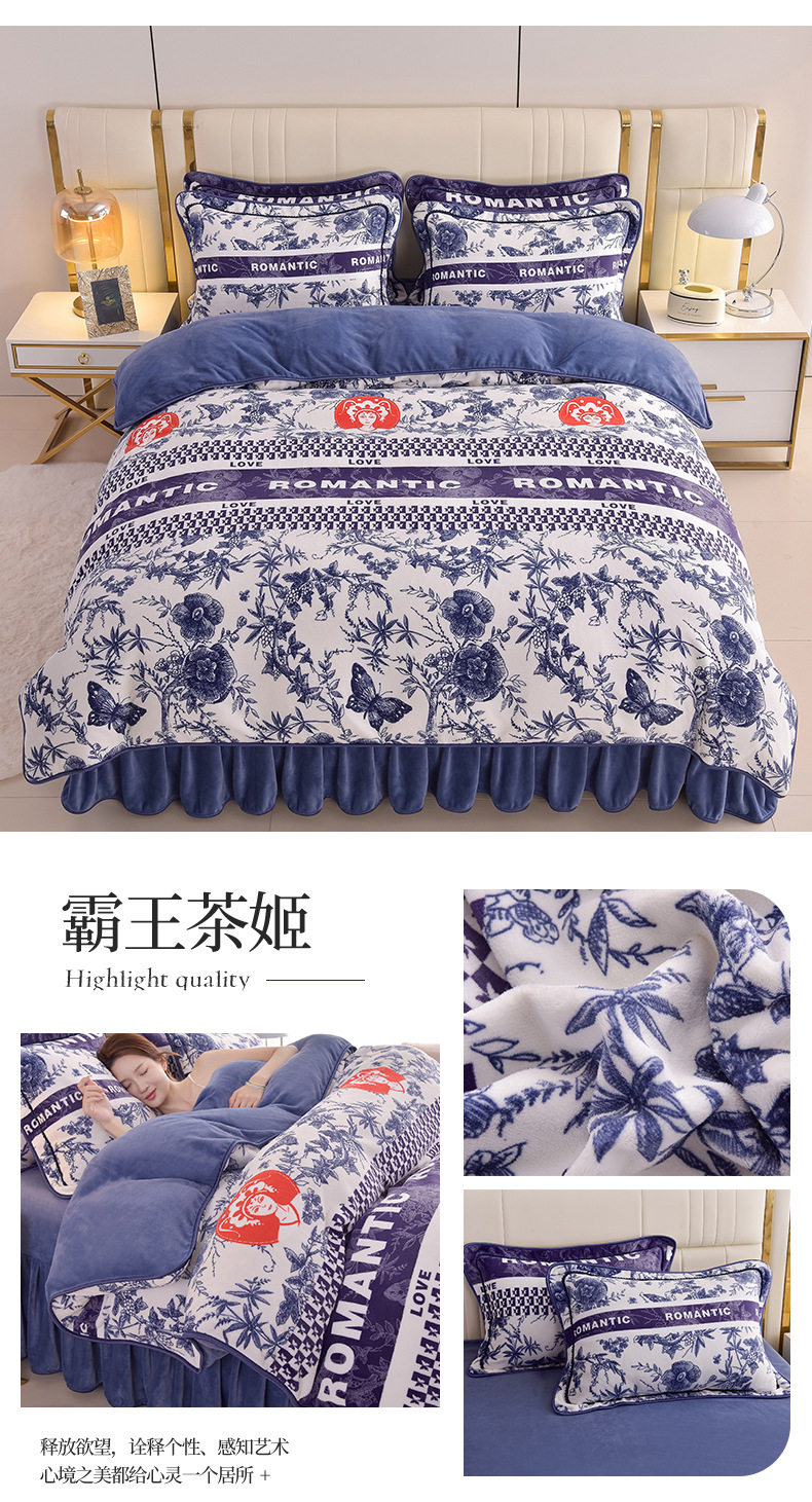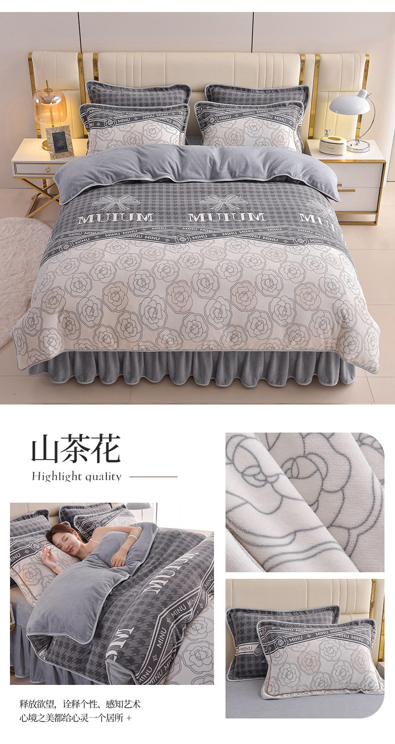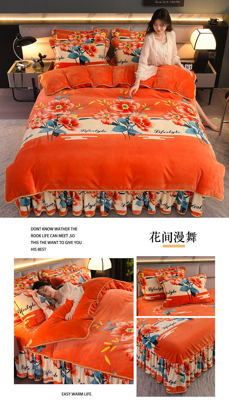 Thickened Milk Velvet Four-Piece Bed Skirt Set Plus Velvet Bed Sheets and Quilt Cover Winter Crystal Velvet Baby Velvet Three-Piece Set Wholesale