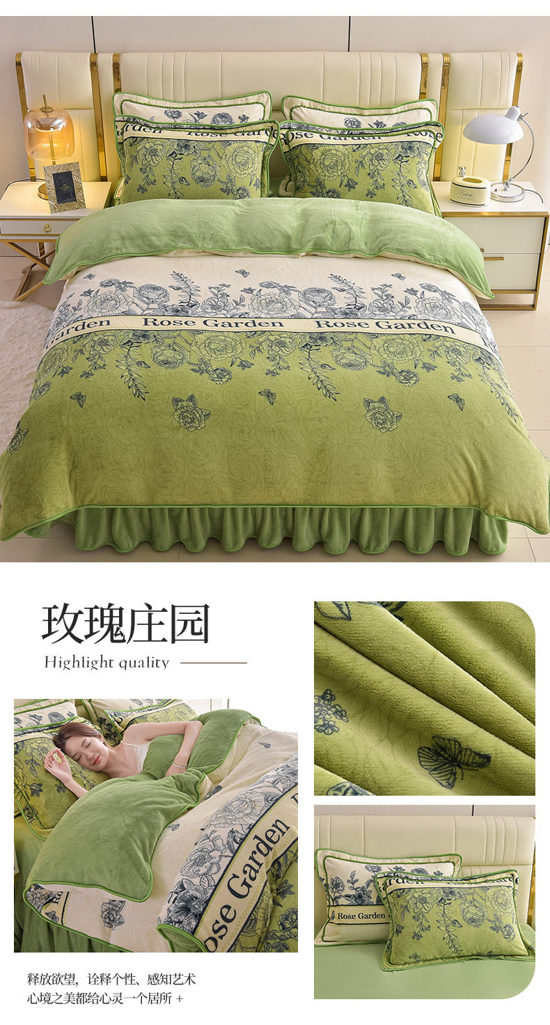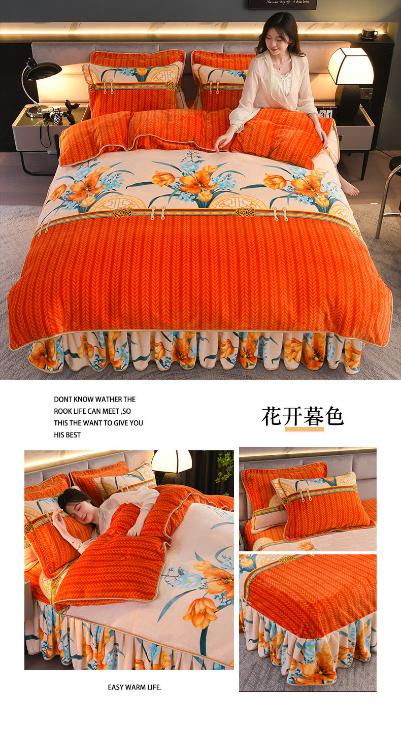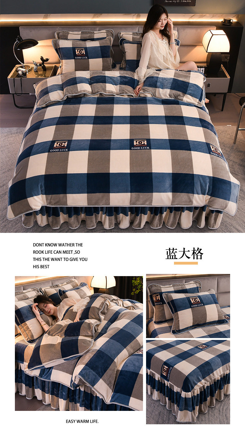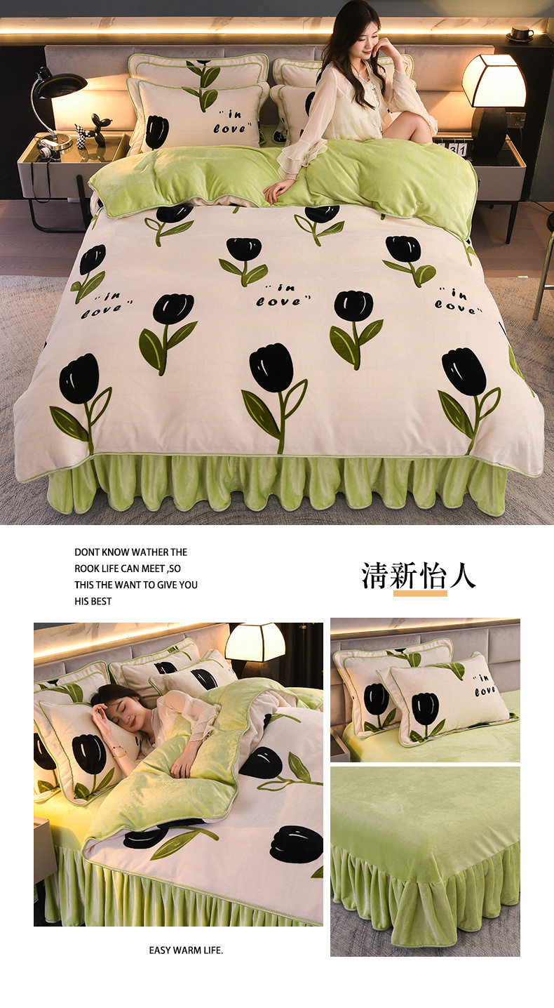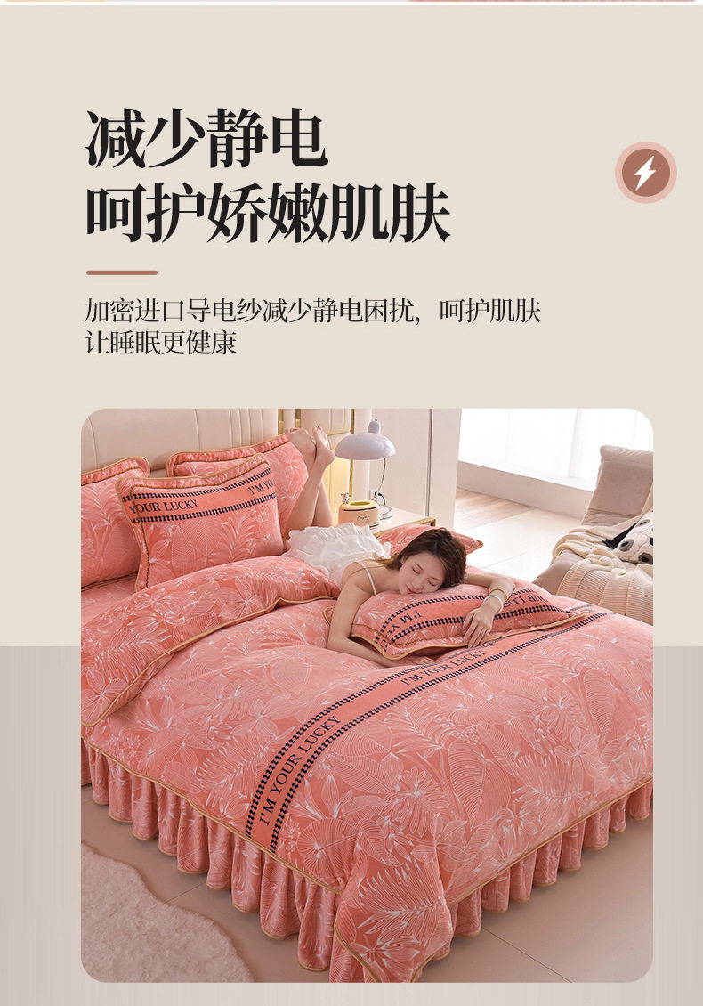 Thickened Milk Velvet Four-Piece Bed Skirt Set Plus Velvet Bed Sheets and Quilt Cover Winter Crystal Velvet Baby Velvet Three-Piece Set Wholesale
