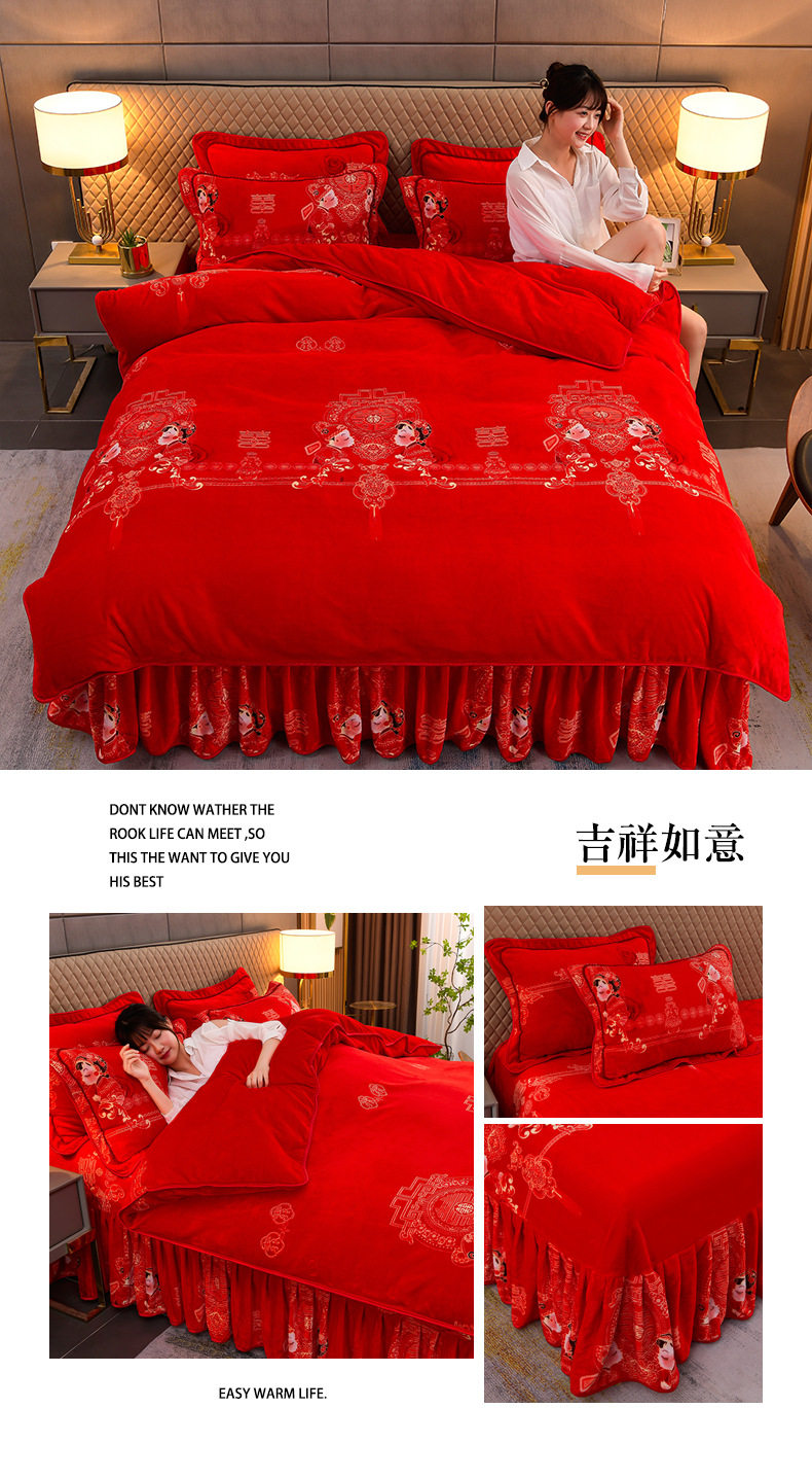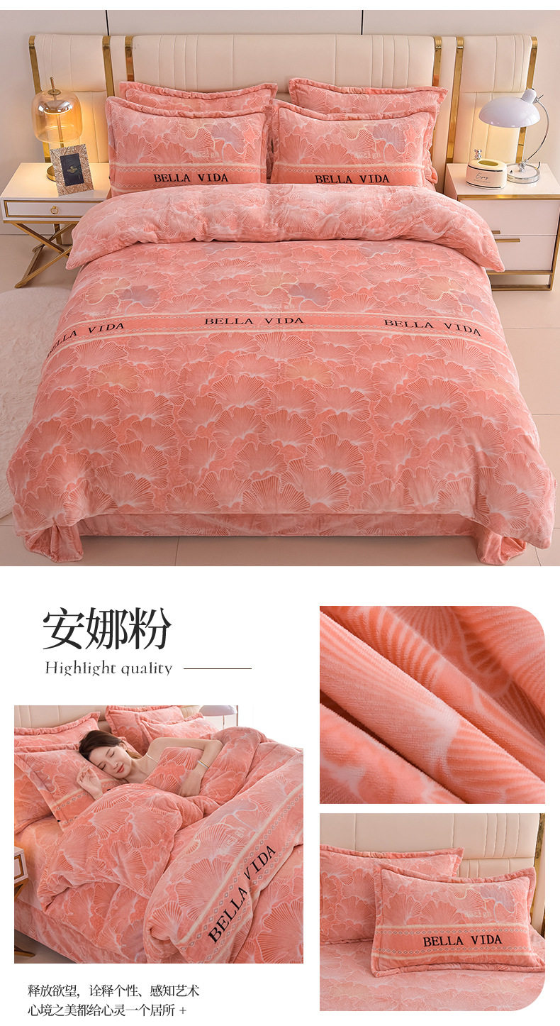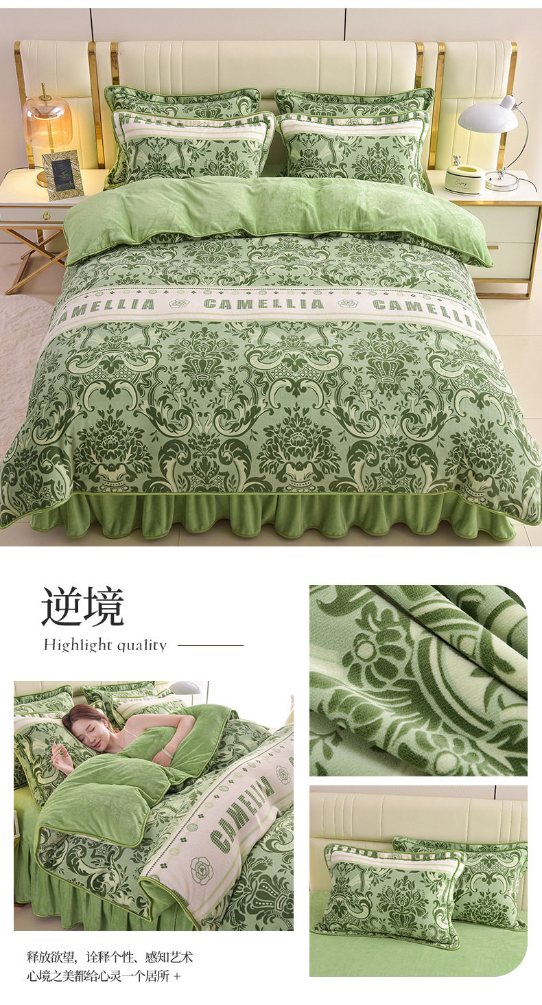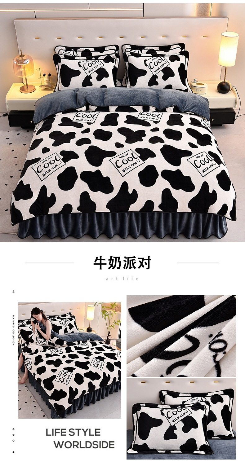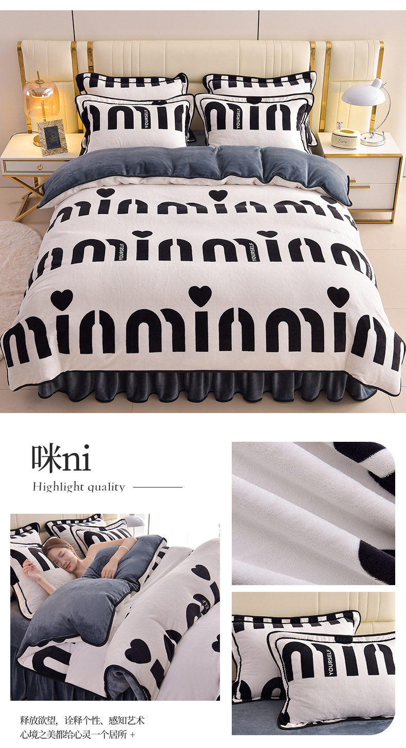Thickened Milk Velvet Four-Piece Bed Skirt Set Plus Velvet Bed Sheets and Quilt Cover Winter Crystal Velvet Baby Velvet Three-Piece Set Wholesale