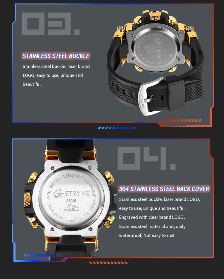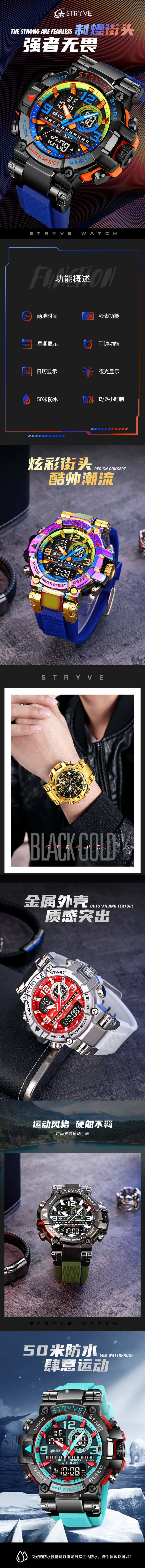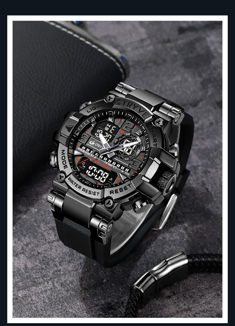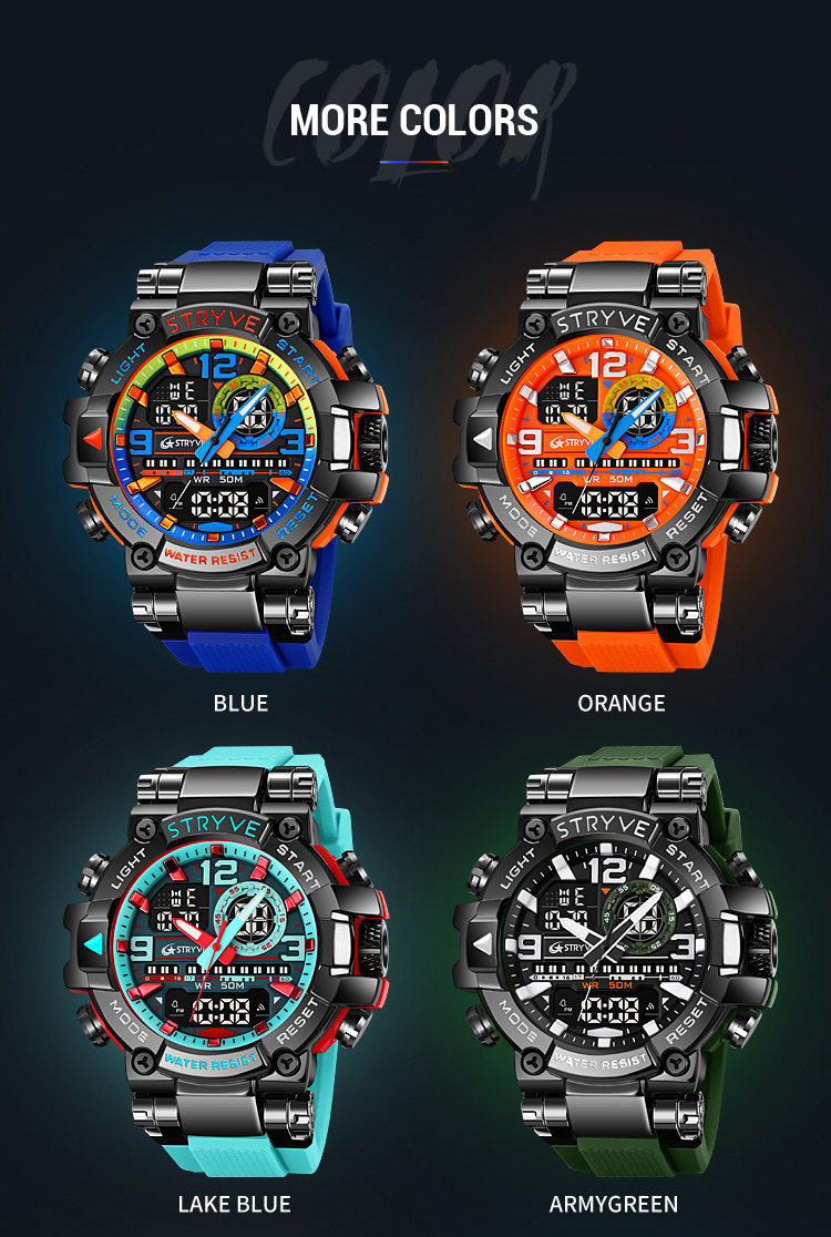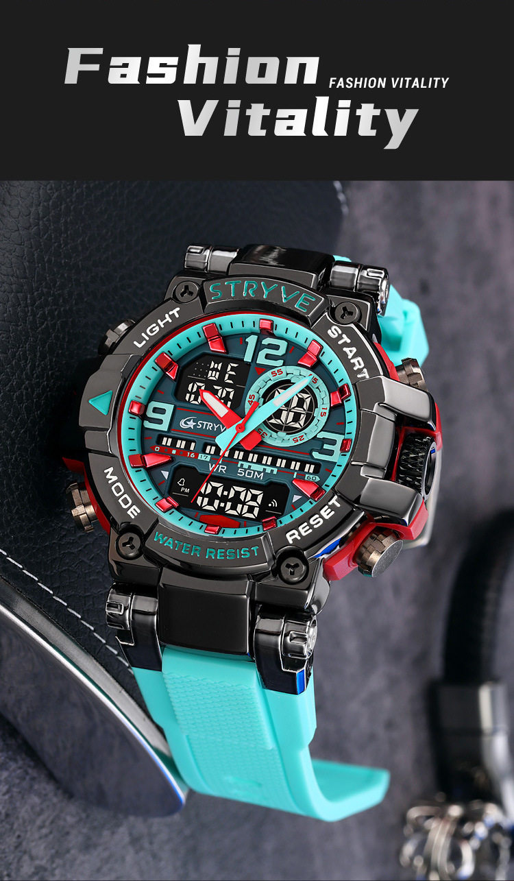 Stryve Sports Luminous Digital Waterproof Watch Multi-Functional Student Cool Watch Cross-Border Dropshipping 8025