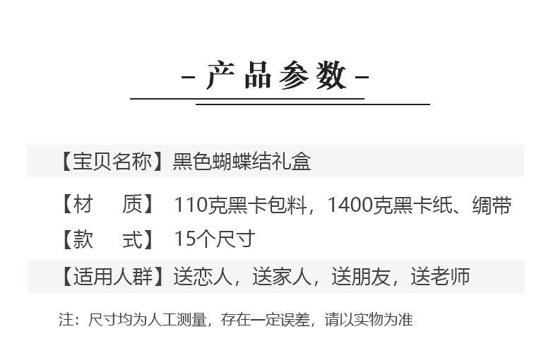 | Specification model | Maple leaf tag black box + greeting card; 16x10x4cm,Maple leaf tag black box + greeting card; 13x13x5.5cm,Maple leaf tag black box + greeting card; 15x15x7cm,Maple leaf tag black box + greeting card; 17x12x6cm,Maple leaf tag black box + greeting card; 11x11x11cm,Maple leaf tag black box + greeting card; 18x14x4cm,Maple leaf tag black box + greeting card; 23x17x4cm,Maple leaf tag black box + greeting card; 23x15x6.5cm,Maple leaf tag black box + greeting card; 20x18x8cm,Maple leaf tag black box + greeting card; 28x20x9cm,Maple leaf tag black box + greeting card; 25x12x12cm,Maple leaf tag black box + greeting card; 33x18x8cm,Maple leaf tag black box + greeting card; 27x19x11cm,Maple leaf tag black box + greeting card; 35x25x9cm,Maple leaf tag black box + greeting card; 40x30x12cm,Black bow + greeting card; 16x10x4cm,Black bow + greeting card; 13x13x5.5cm,Black bow + greeting card; 15x15x7cm,Black bow + greeting card; 17x12x6cm,Black bow + greeting card; 11x11x11cm,Black bow + greeting card; 18x14x4cm,Black bow + greeting card; 23x17x4cm,Black bow + greeting card; 23x15x6.5cm,Black bow + greeting card; 20x18x8cm,Black bow + greeting card; 28x20x9cm,Black bow + greeting card; 25x12x12cm,Black bow + greeting card; 33x18x8cm,Black bow + greeting card; 27x19x11cm,Black bow + greeting card; 35x25x9cm,Black bow + greeting card; 40x30x12cm,Maple leaf tag black box + greeting card + gift bag; 16x10x4cm,Maple leaf tag black box + greeting card + gift bag; 13x13x5.5cm,Maple leaf tag black box + greeting card + gift bag; 15x15x7cm,Maple leaf tag black box + greeting card + gift bag; 17x12x6cm,Maple leaf tag black box + greeting card + gift bag; 11x11x11cm,Maple leaf tag black box + greeting card + gift bag; 18x14x4cm,Maple leaf tag black box + greeting card + gift bag; 23x17x4cm,Maple leaf tag black box + greeting card + gift bag; 23x15x6.5cm,Maple leaf tag black box + greeting card + gift bag; 20x18x8cm,Maple leaf tag black box + greeting card + gift bag; 28x20x9cm,Maple leaf tag black box + greeting card + gift bag; 25x12x12cm,Maple leaf tag black box + greeting card + gift bag; 33x18x8cm,Maple leaf tag black box + greeting card + gift bag; 27x19x11cm,Maple leaf tag black box + greeting card + gift bag; 35x25x9cm,Maple leaf tag black box + greeting card + gift bag; 40x30x12cm,Black bow + greeting card + gift bag; 16x10x4cm,Black bow + greeting card + gift bag; 13x13x5.5cm,Black bow + greeting card + gift bag; 15x15x7cm,Black bow + greeting card + gift bag; 17x12x6cm,Black bow + greeting card + gift bag; 11x11x11cm,Black bow + greeting card + gift bag; 18x14x4cm,Black bow + greeting card + gift bag; 23x17x4cm,Black bow + greeting card + gift bag; 23x15x6.5cm,Black bow + greeting card + gift bag; 20x18x8cm,Black bow + greeting card + gift bag; 28x20x9cm,Black bow + greeting card + gift bag; 25x12x12cm,Black bow + greeting card + gift bag; 33x18x8cm,Black bow + greeting card + gift bag; 27x19x11cm,Black bow + greeting card + gift bag; 35x25x9cm,Black bow + greeting card + gift bag; 40x30x12cm,Black box without tag + greeting card + gift bag; 16x10x4cm,Black box without tag + greeting card + gift bag; 13x13x5.5cm,Black box without tag + greeting card + gift bag; 15x15x7cm,Black box without tag + greeting card + gift bag; 17x12x6cm,Black box without tag + greeting card + gift bag; 11x11x11cm,Black box without tag + greeting card + gift bag; 18x14x4cm,Black box without tag + greeting card + gift bag; 23x17x4cm,Black box without tag + greeting card + gift bag; 23x15x6.5cm,Black box without tag + greeting card + gift bag; 20x18x8cm,Black box without tag + greeting card + gift bag; 28x20x9cm,Black box without tag + greeting card + gift bag; 25x12x12cm,Black box without tag + greeting card + gift bag; 33x18x8cm,Black box without tag + greeting card + gift bag; 27x19x11cm,Black box without tag + greeting card + gift bag; 35x25x9cm,Black box without tag + greeting card + gift bag; 40x30x12cm,Maple leaf tag black box + greeting card + gift bag + raffia; 16x10x4cm,Maple leaf tag black box + greeting card + gift bag + raffia; 13x13x5.5cm,Maple leaf tag black box + greeting card + gift bag + raffia; 15x15x7cm,Maple leaf tag black box + greeting card + gift bag + raffia; 17x12x6cm,Maple leaf tag black box + greeting card + gift bag + raffia; 11x11x11cm,Maple leaf tag black box + greeting card + gift bag + raffia; 18x14x4cm,Maple leaf tag black box + greeting card + gift bag + raffia; 23x17x4cm,Maple leaf tag black box + greeting card + gift bag + raffia; 23x15x6.5cm,Maple leaf tag black box + greeting card + gift bag + raffia; 20x18x8cm,Maple leaf tag black box + greeting card + gift bag + raffia; 28x20x9cm,Maple leaf tag black box + greeting card + gift bag + raffia; 25x12x12cm,Maple leaf tag black box + greeting card + gift bag + raffia; 33x18x8cm,Maple leaf tag black box + greeting card + gift bag + raffia; 27x19x11cm,Maple leaf tag black box + greeting card + gift bag + raffia; 35x25x9cm,Maple leaf tag black box + greeting card + gift bag + raffia; 40x30x12cm,Black bow + greeting card + gift bag + raffia; 16x10x4cm,Black bow + greeting card + gift bag + raffia; 13x13x5.5cm,Black bow + greeting card + gift bag + raffia; 15x15x7cm,Black bow + greeting card + gift bag + raffia; 17x12x6cm,Black bow + greeting card + gift bag + raffia; 11x11x11cm,Black bow + greeting card + gift bag + raffia; 18x14x4cm,Black bow + greeting card + gift bag + raffia; 23x17x4cm,Black bow + greeting card + gift bag + raffia; 23x15x6.5cm,Black bow + greeting card + gift bag + raffia; 20x18x8cm,Black bow + greeting card + gift bag + raffia; 28x20x9cm,Black bow + greeting card + gift bag + raffia; 25x12x12cm,Black bow + greeting card + gift bag + raffia; 33x18x8cm,Black bow + greeting card + gift bag + raffia; 27x19x11cm,Black bow + greeting card + gift bag + raffia; 35x25x9cm,Black bow + greeting card + gift bag + raffia; 40x30x12cm,Black box without tag + greeting card + gift bag + raffia; 16x10x4cm,Black box withou