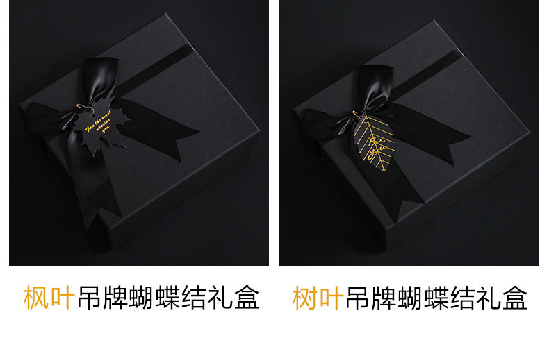 | Color | Black bow + greeting card,Maple leaf tag black box + greeting card + gift bag,Black box without tag + greeting card + gift bag,Maple leaf tag black box + greeting card,Black bow + greeting card + gift bag,Maple leaf tag black box + greeting card + gift bag + raffia,Black bow + greeting card + gift bag + raffia,Black box without tag + greeting card + gift bag + raffia |