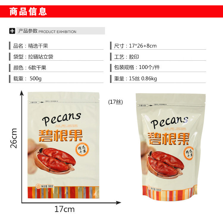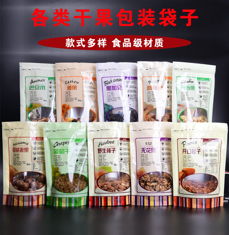 Dried Fruit Packaging Bag Cashew Hazelnut Pine Nut Blackcurrant Almond Pecan Self-sealing Self-standing 500g Packaging Bag