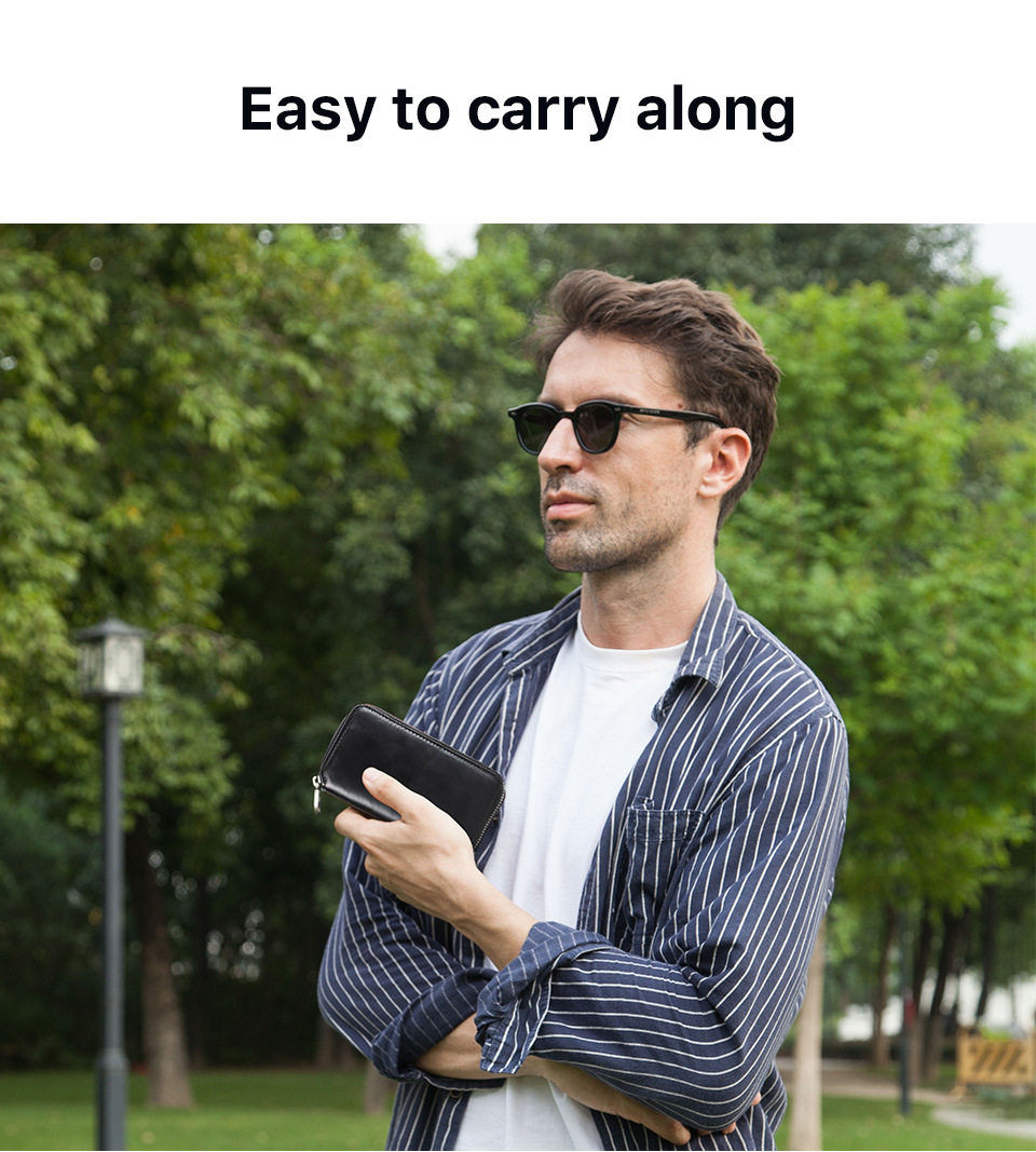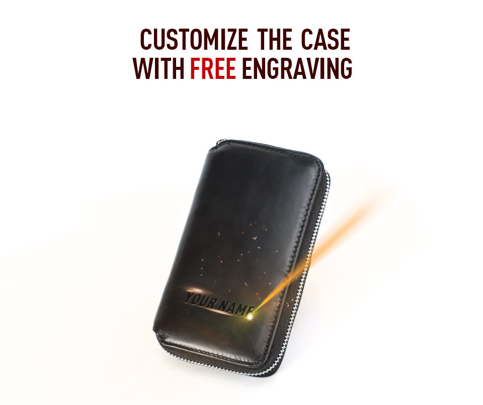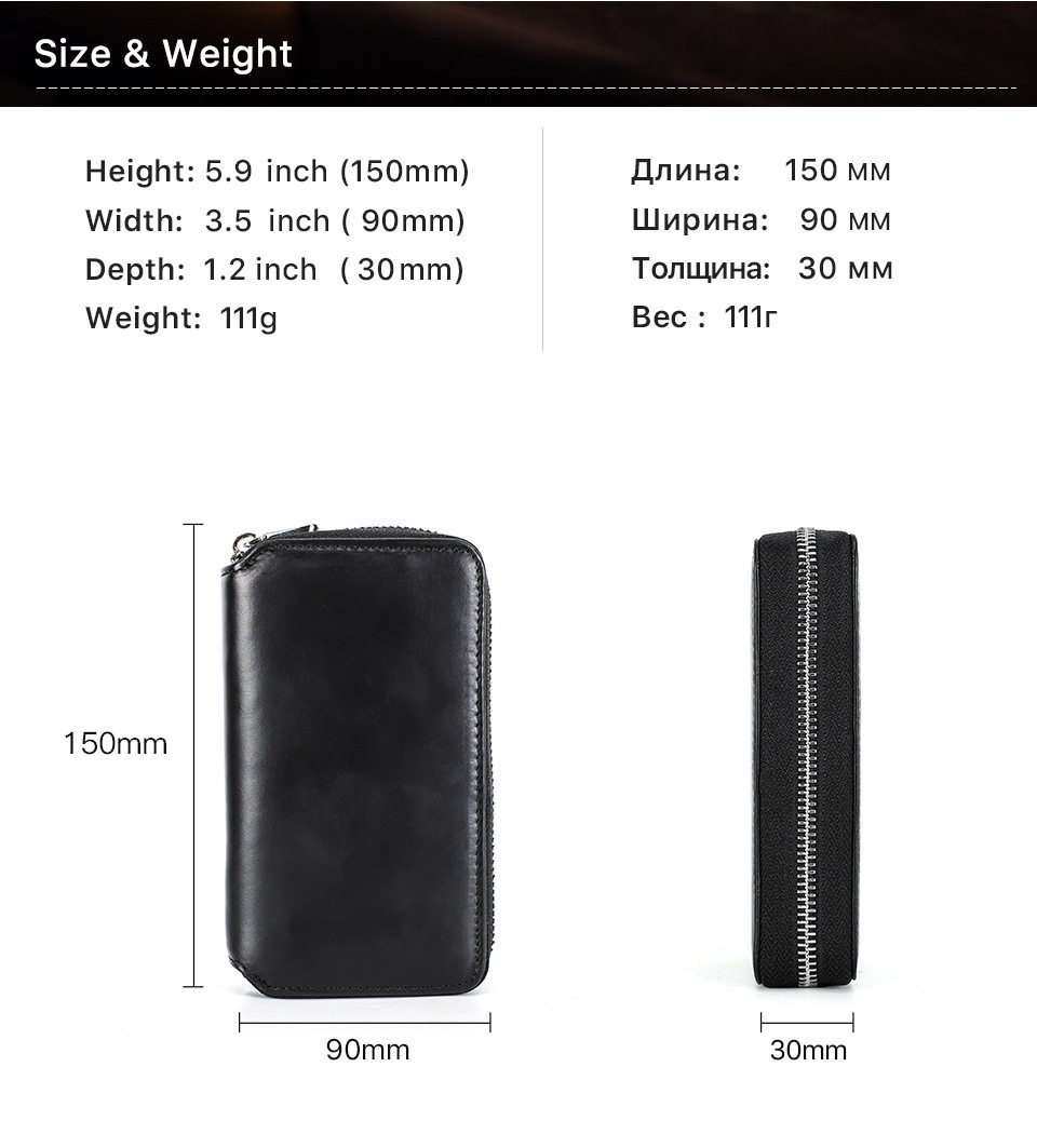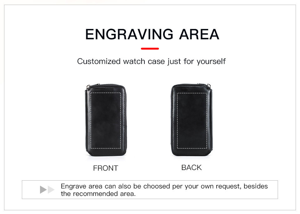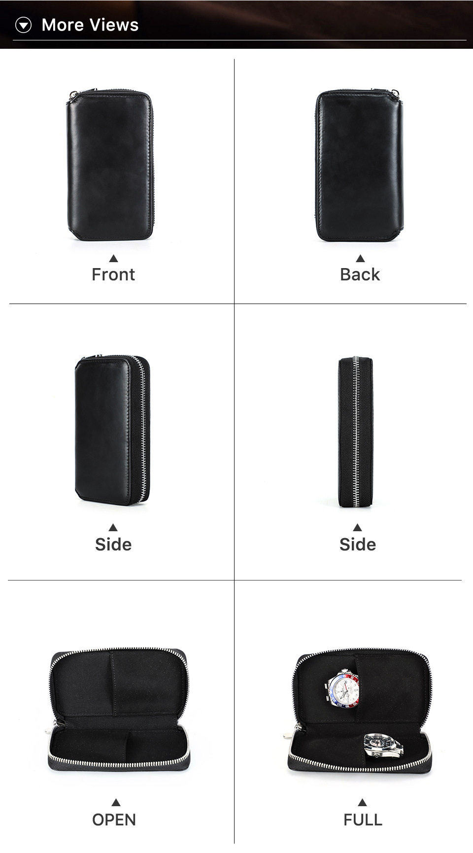 Black Waxed Cowhide Watch Case Two-Position Outdoor Travel Zipper Portable Genuine Leather Couple Watch Storage Bag