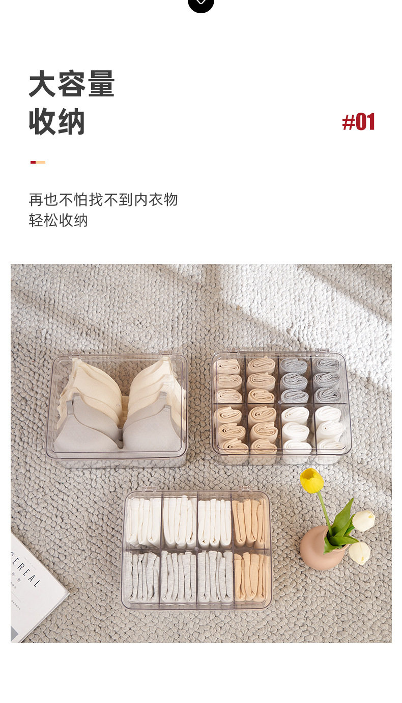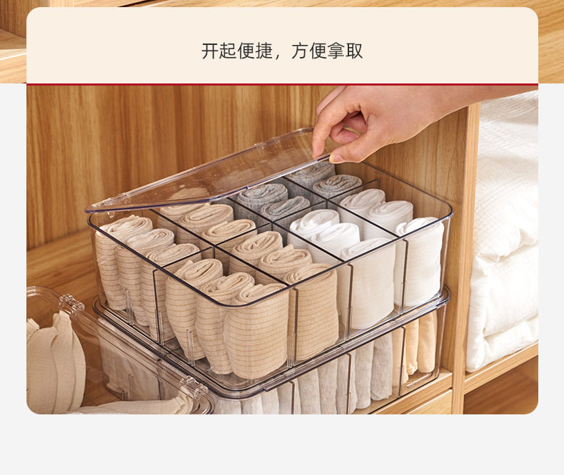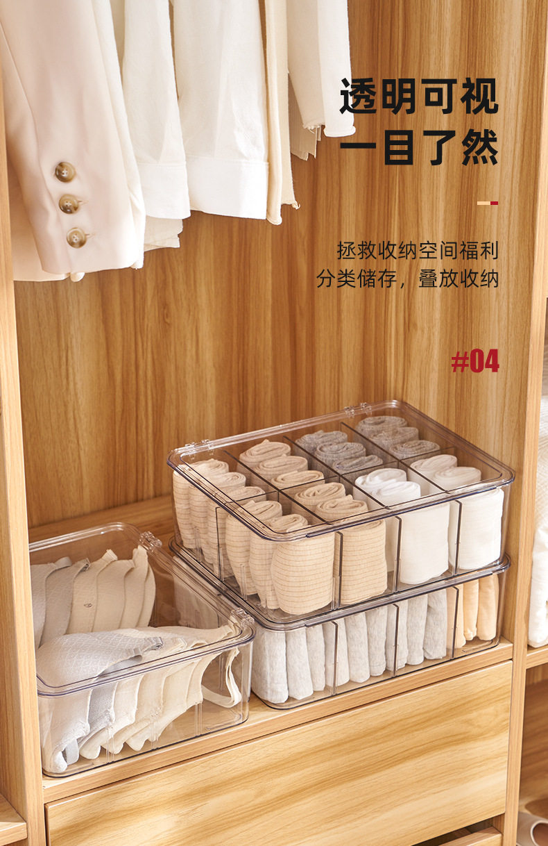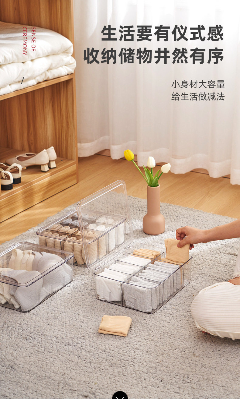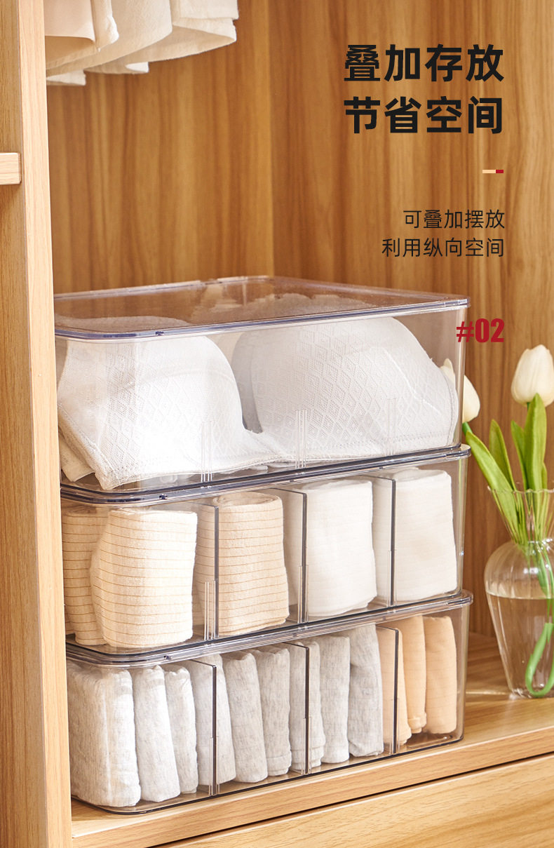 Underwear Storage Box Plastic Socks Underwear with Lid Partition Transparent Arrangement PET Bra Home Wardrobe Artifact