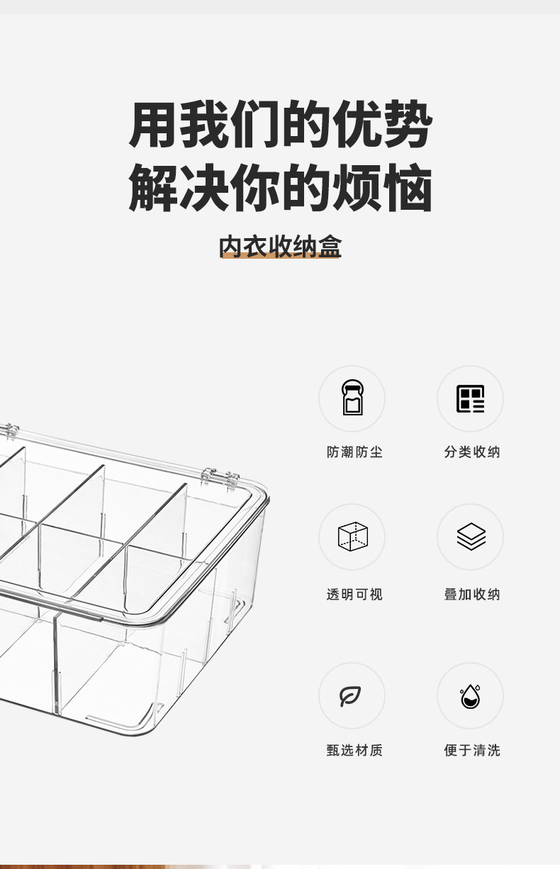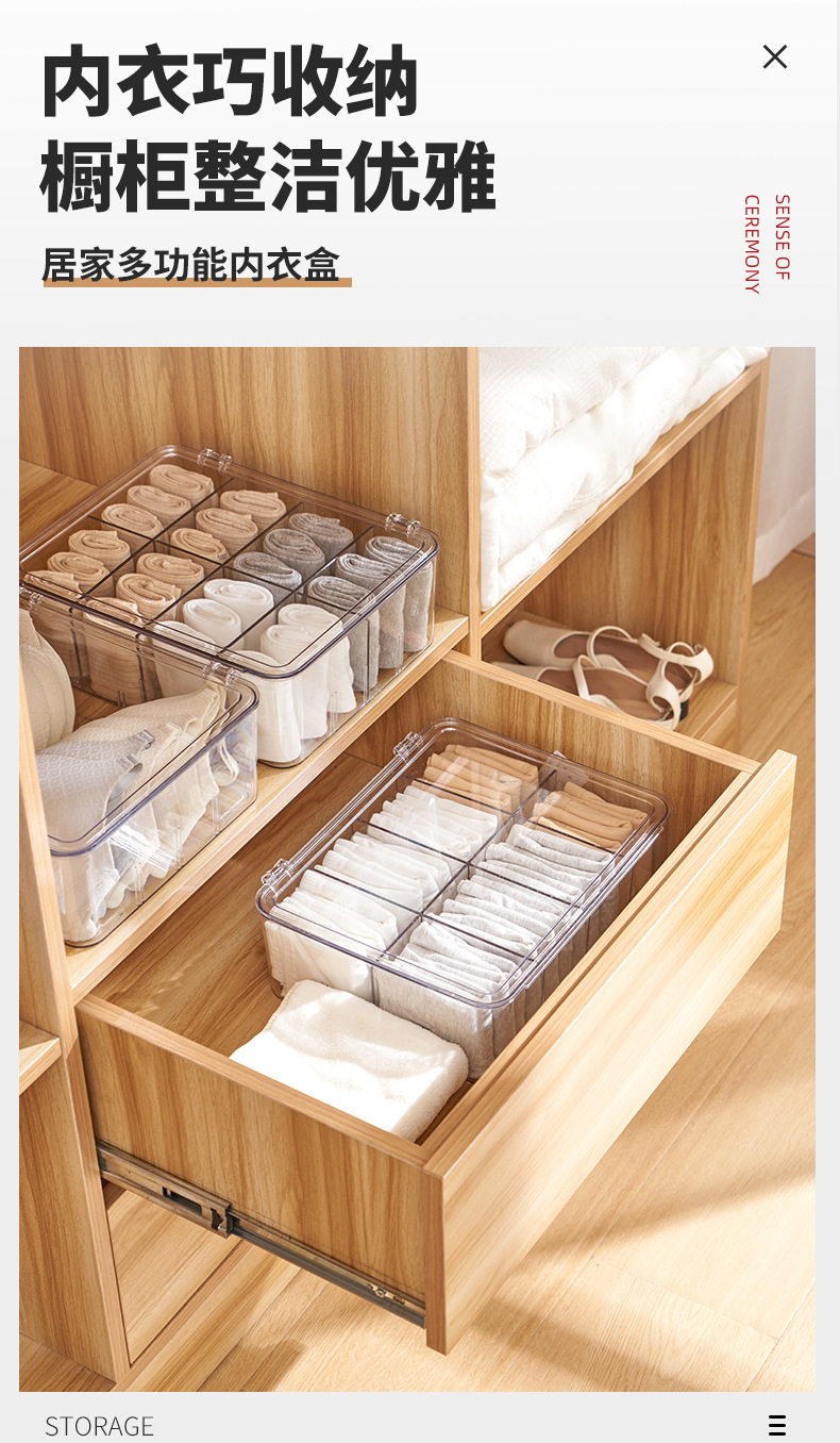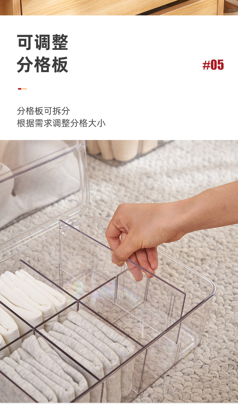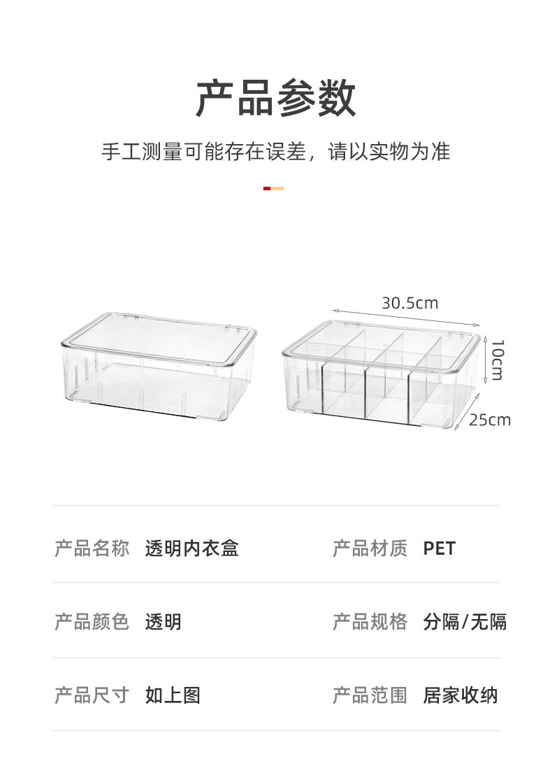 Underwear Storage Box Plastic Socks Underwear with Lid Partition Transparent Arrangement PET Bra Home Wardrobe Artifact
