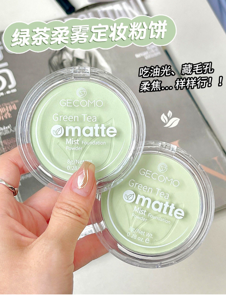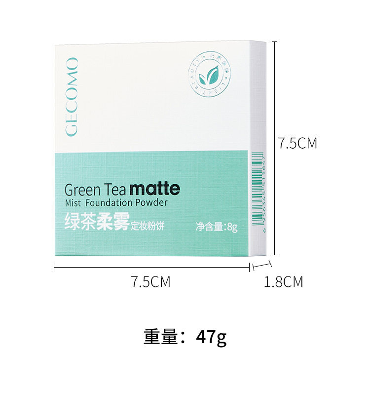 Gemeng Green Tea Makeup Powder Cake Soft Mist Matte Powder Powder Lasting Flaw Concealer Waterproof Brightening Fixation Makeup
